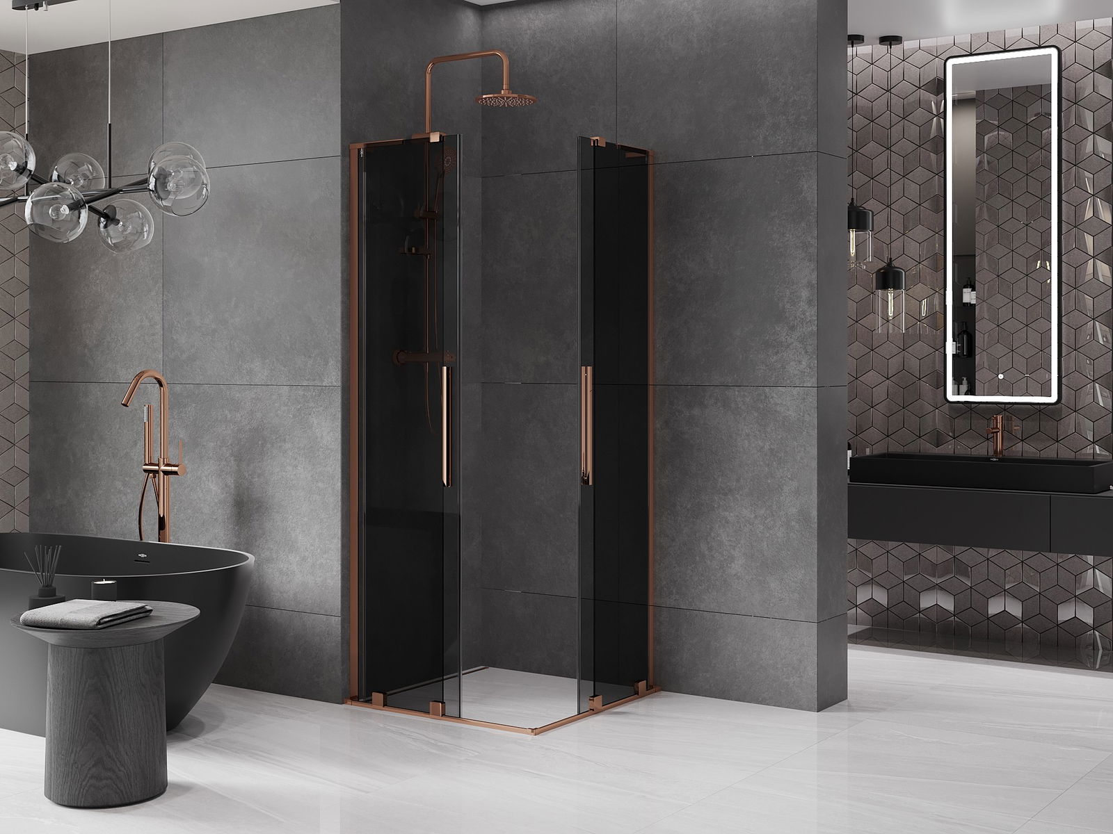 Mexen Velar L Duo cabină de duș culisantă 90 x 90 cm, grafit, aur roz - 871-090-090-02-43-60