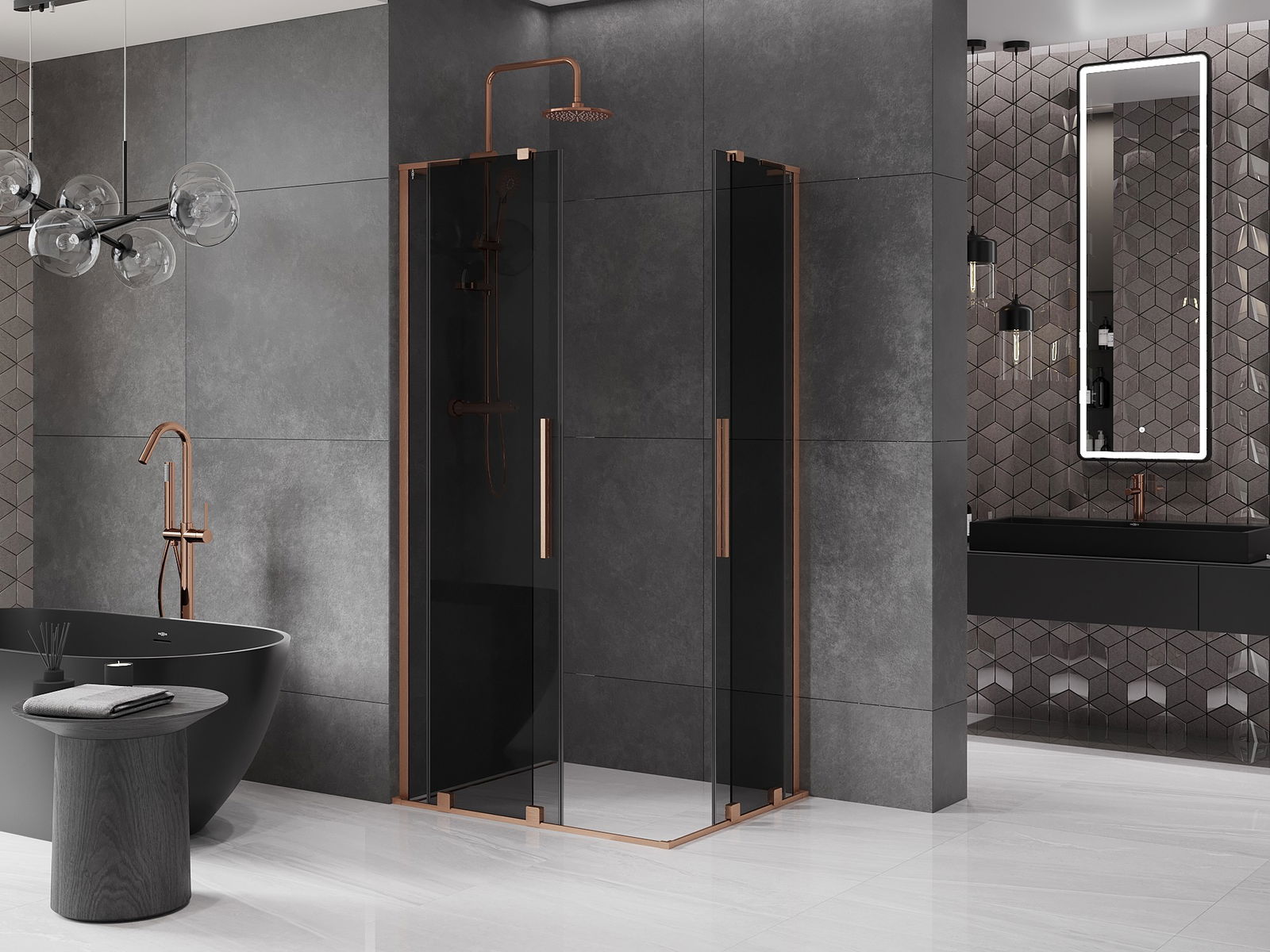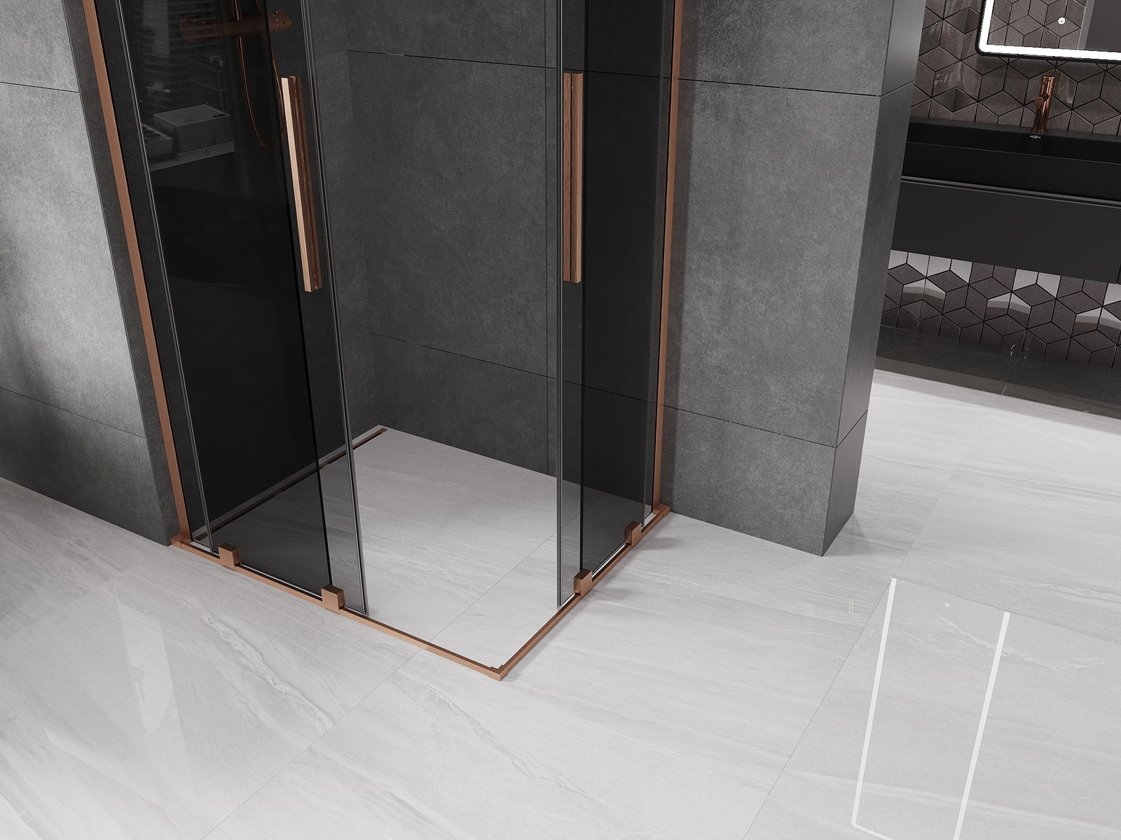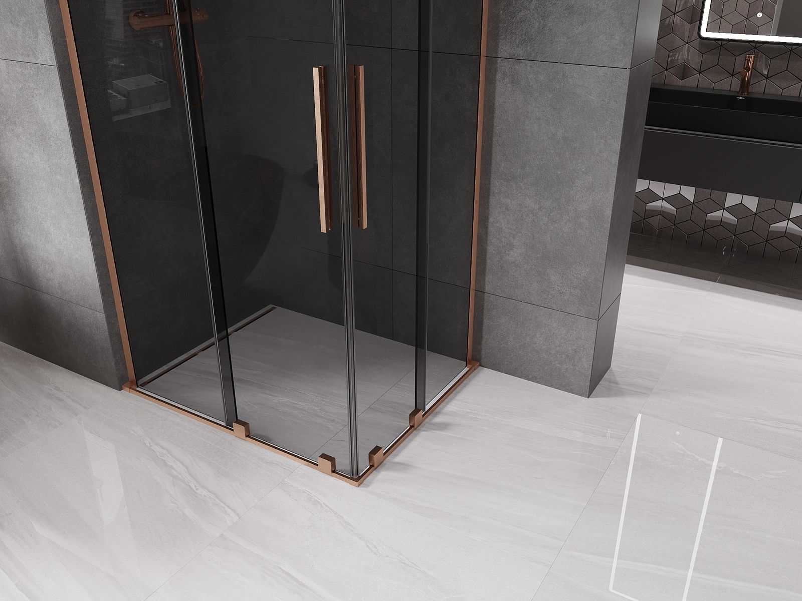 Mexen Velar L Duo cabină de duș culisantă 90 x 80 cm, grafit, cupru periat - 871-090-080-02-43-65