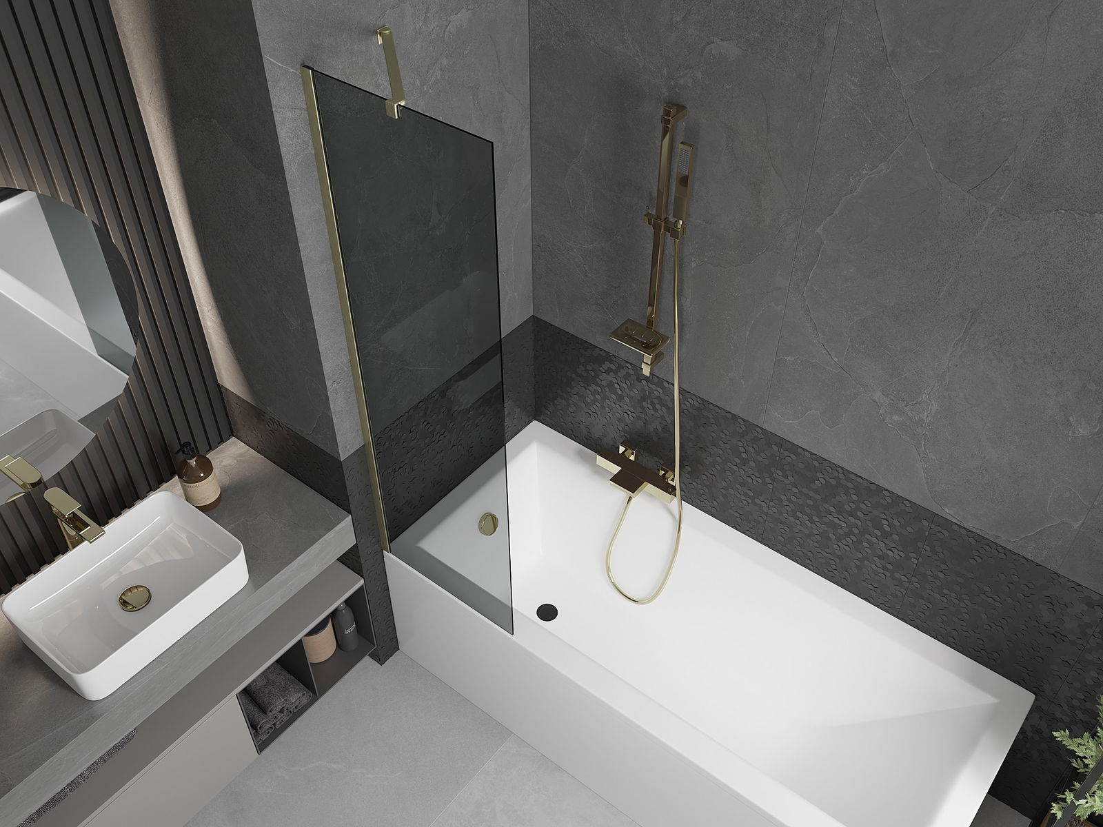 Mexen Next paravan de baie cu 1 panou 50 x 150 cm, grafit, auriu periat - 895-050-000-00-40-55