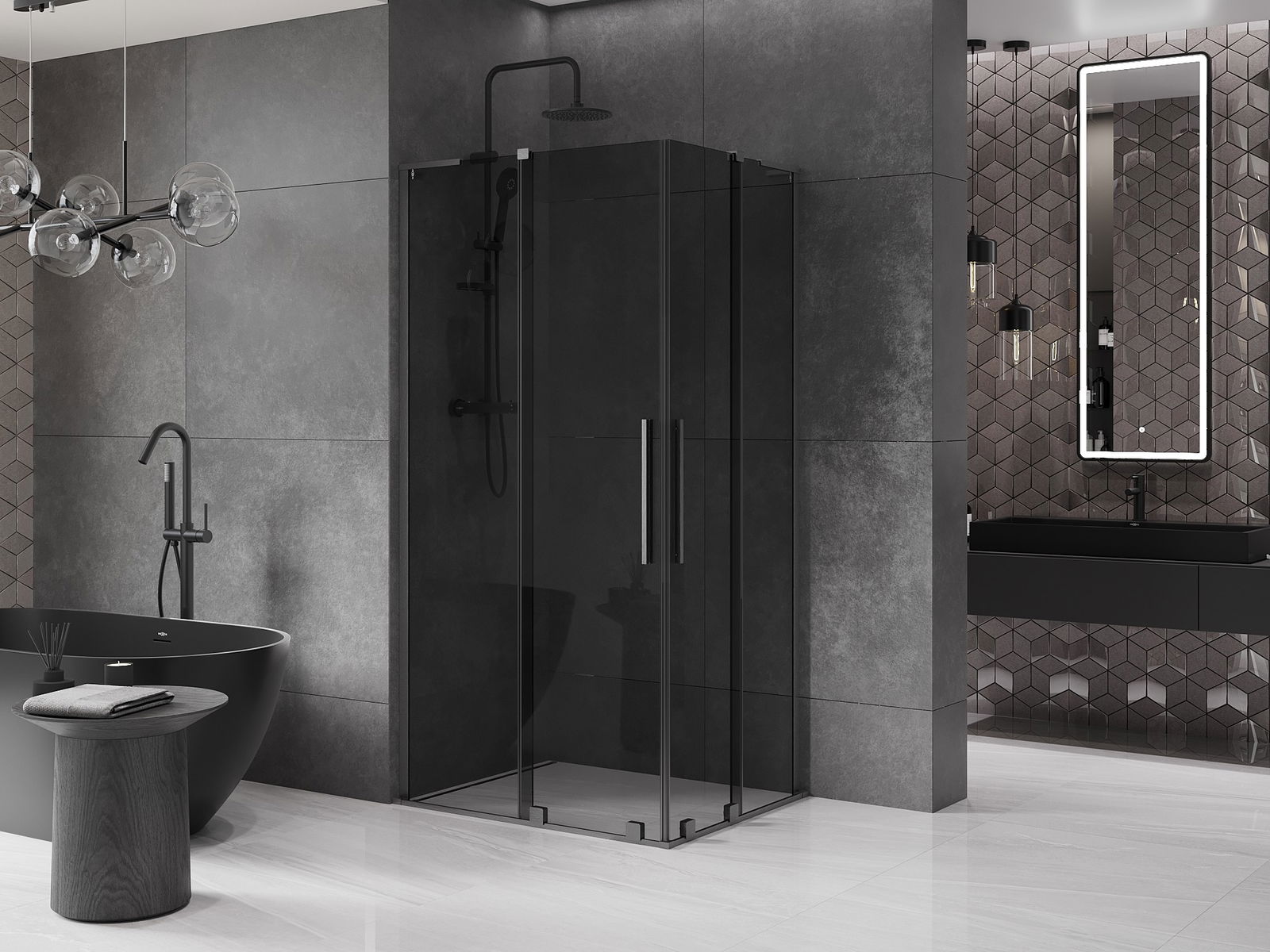 Mexen Velar L Duo cabină de duș glisantă 90 x 80 cm, grafit, gun gray periat - 871-090-080-02-43-66