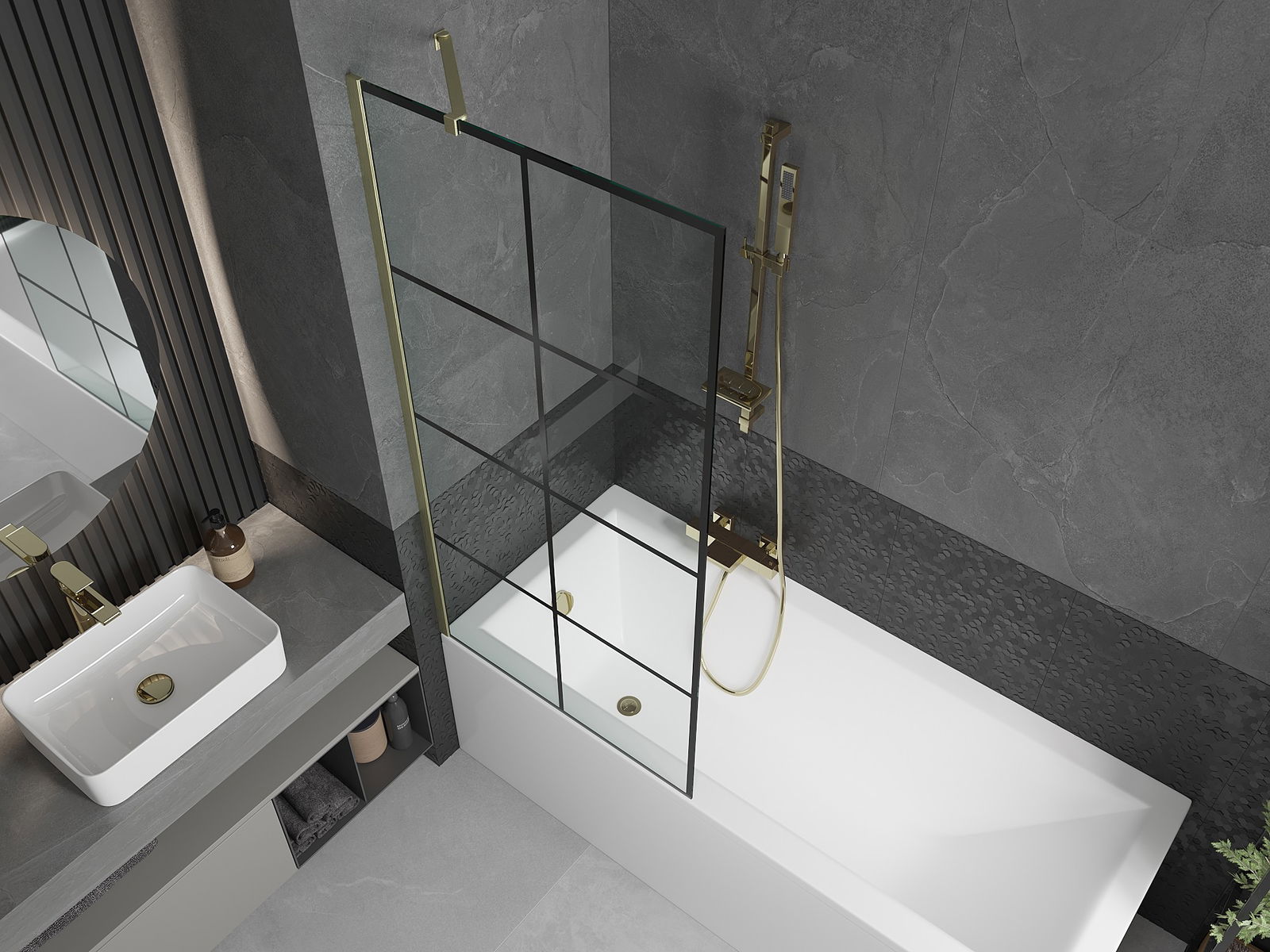 Mexen Next paravan de cadă cu 1 aripă 80 x 150 cm, grilaj negru, auriu periat - 895-080-000-00-77-55