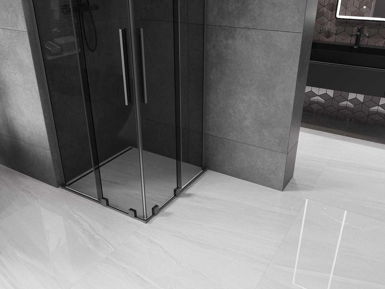 Mânerul practic și confortabil este realizat din oțel inoxidabil. Forma modernă, combinată cu un finisaj asortat cu culoarea profilelor, conferă ansamblului un aspect modern și elegant, subliniind estetica fiecărei băi.