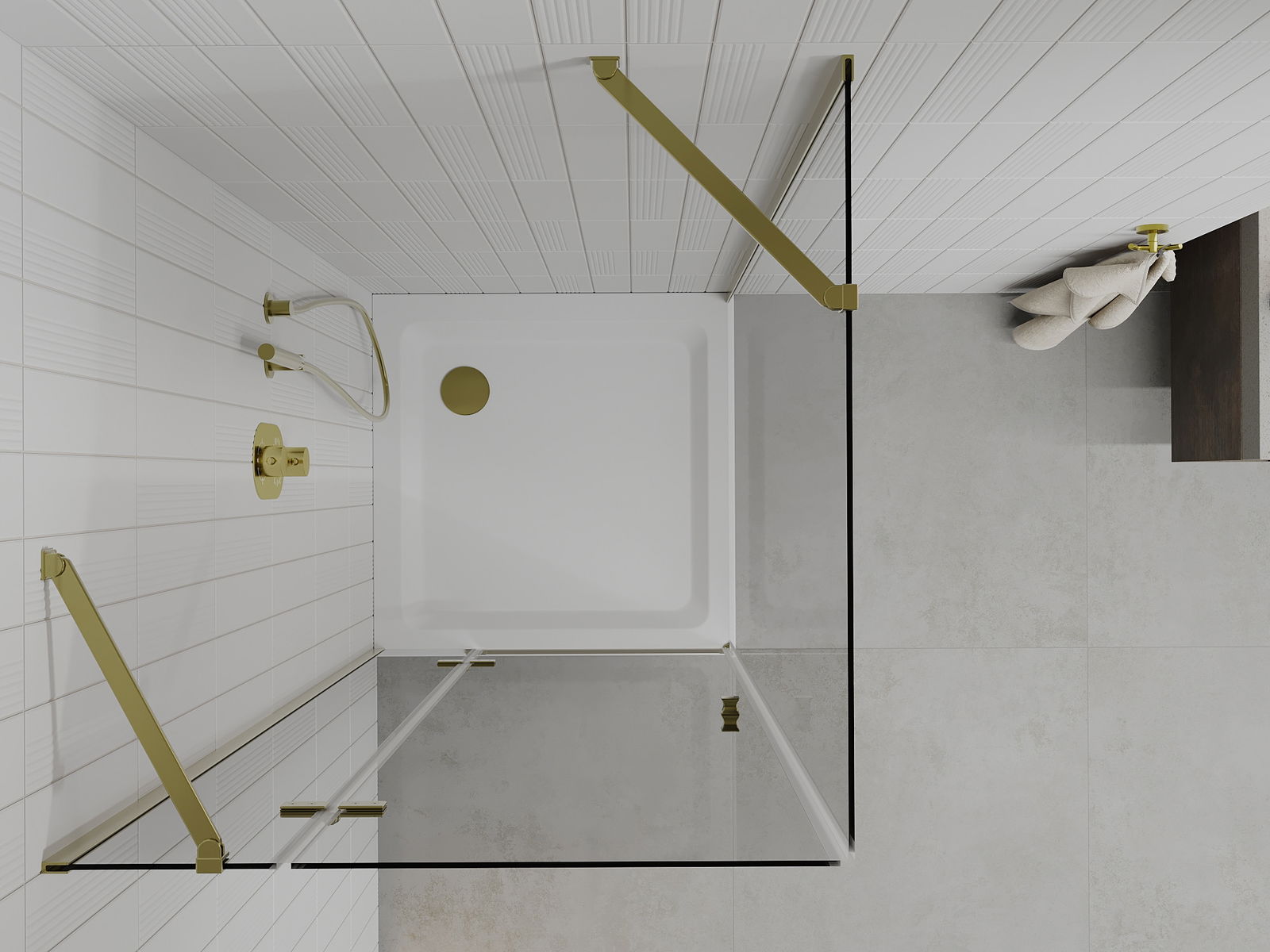 Mexen Roma cabină de duș cu ușă batantă 70 x 70 cm, transparentă, aurie + cadă de duș Flat - 854-070-070-50-00-4010