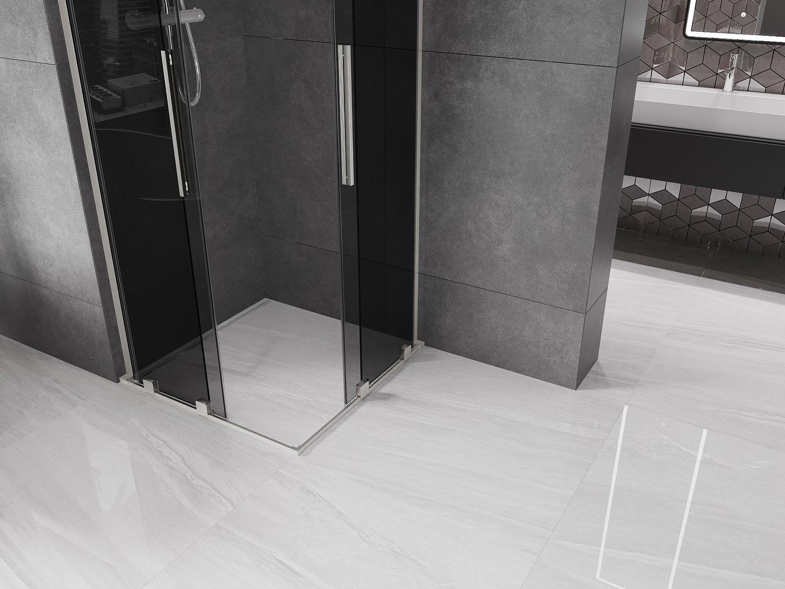 Mânerul practic și confortabil este realizat din oțel inoxidabil. Forma modernă, combinată cu un finisaj asortat cu culoarea profilelor, conferă ansamblului un aspect modern și elegant, subliniind estetica fiecărei băi.
