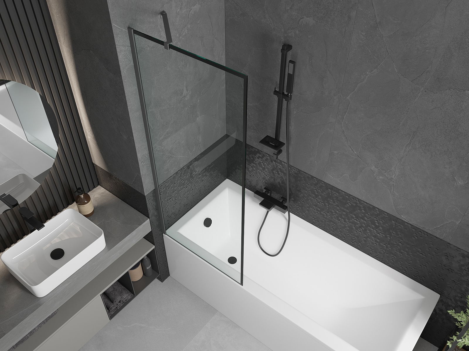 Datorită utilizării unui sistem universal de montare, paravanul poate fi montat pe partea dreaptă sau pe partea stângă, în funcție de necesități. În acest fel, poți proiecta cu ușurință un duș adaptat la spațiul băii.