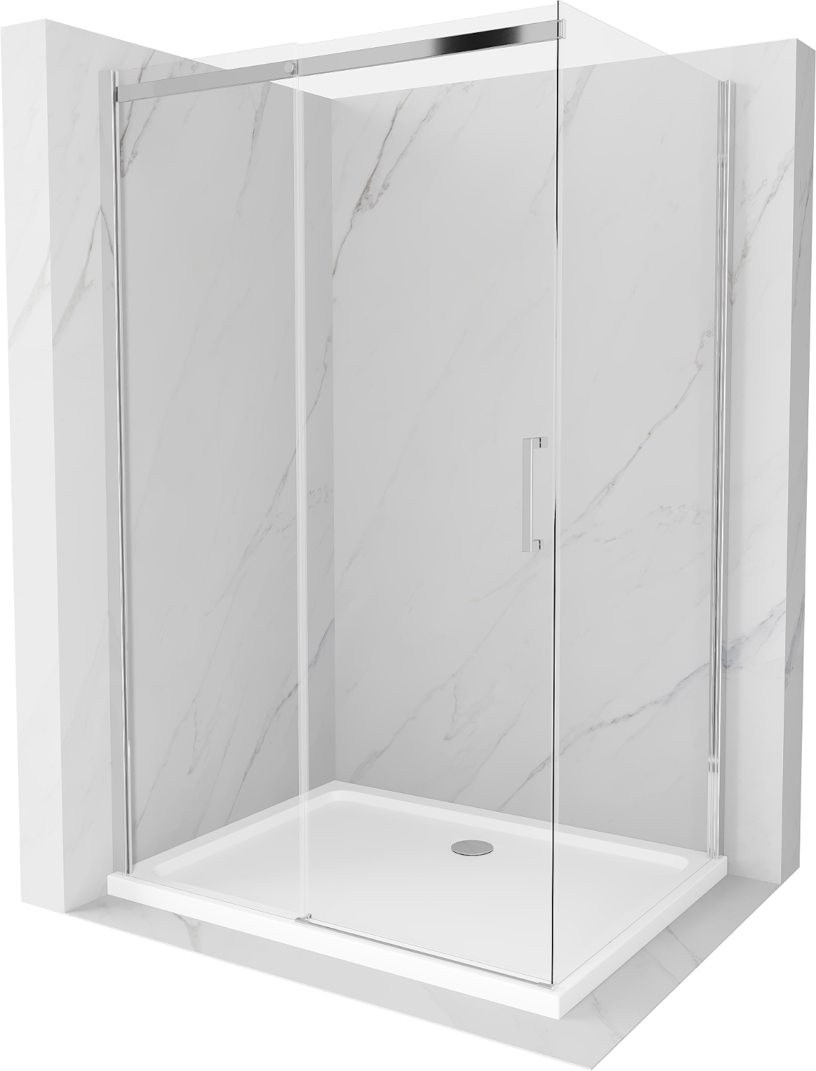 Mexen Omega cabină de duș culisantă 100 x 80 cm, transparentă, crom + cădiță de duș Flat - 825-100-080-01-00-4010
