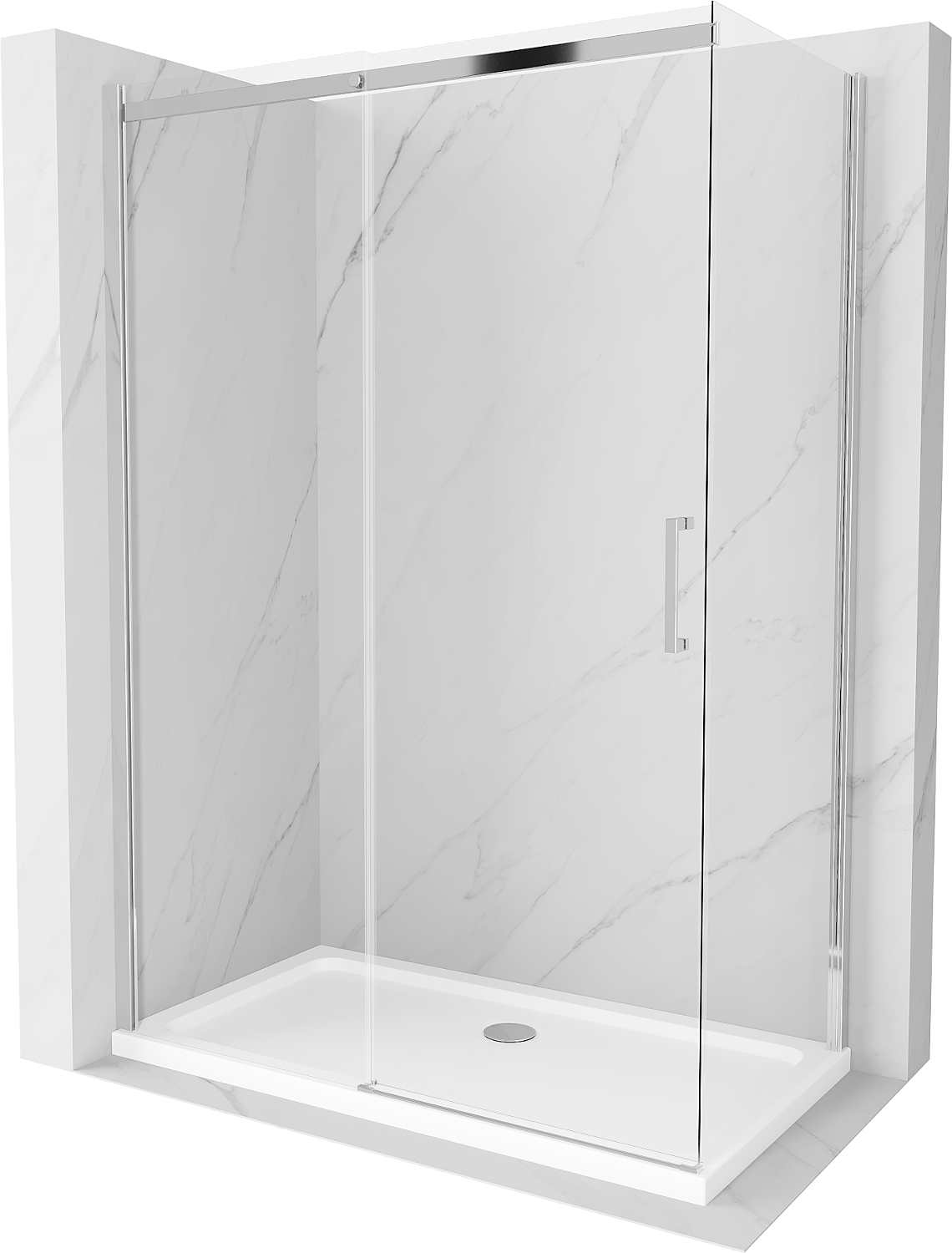 Mexen Omega cabina de duș glisantă 140 x 70 cm, transparent, crom + cadă de duș Flat - 825-140-070-01-00-4010