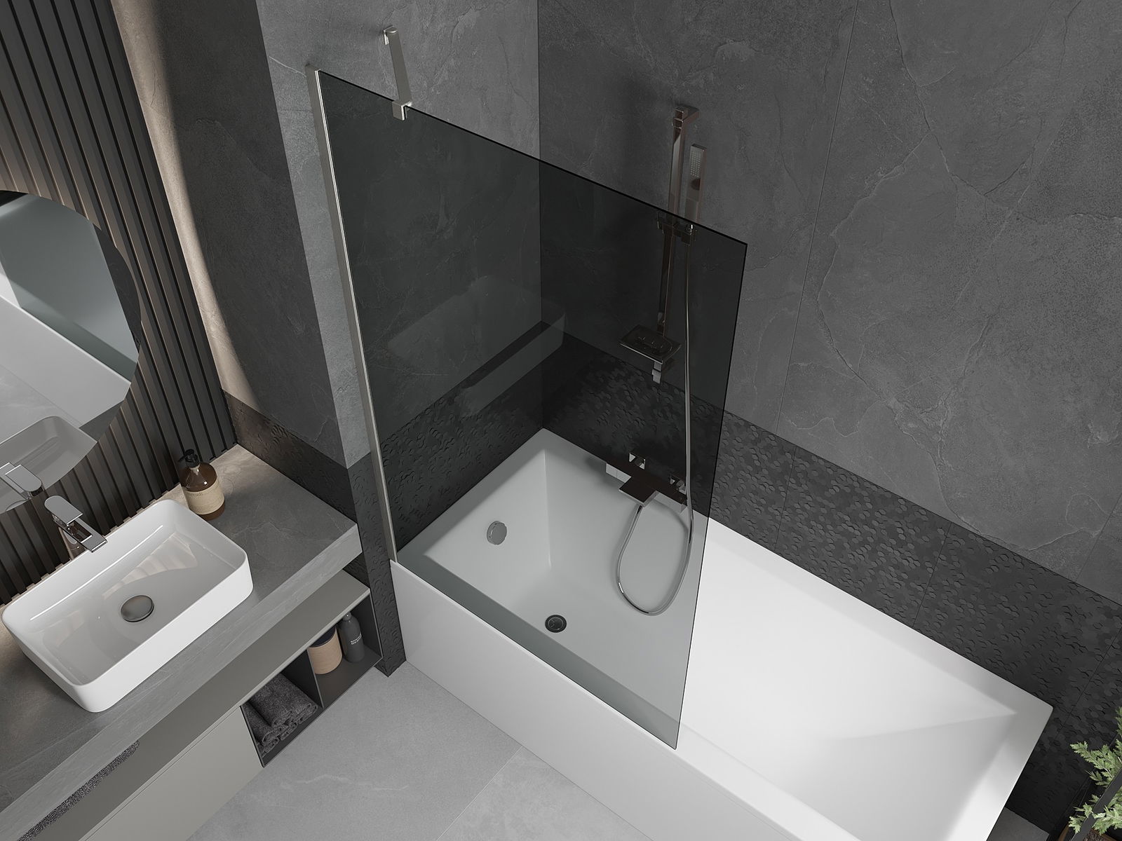 Datorită utilizării unui sistem universal de montare, paravanul poate fi montat pe partea dreaptă sau pe partea stângă, în funcție de necesități. În acest fel, poți proiecta cu ușurință un duș adaptat la spațiul băii.