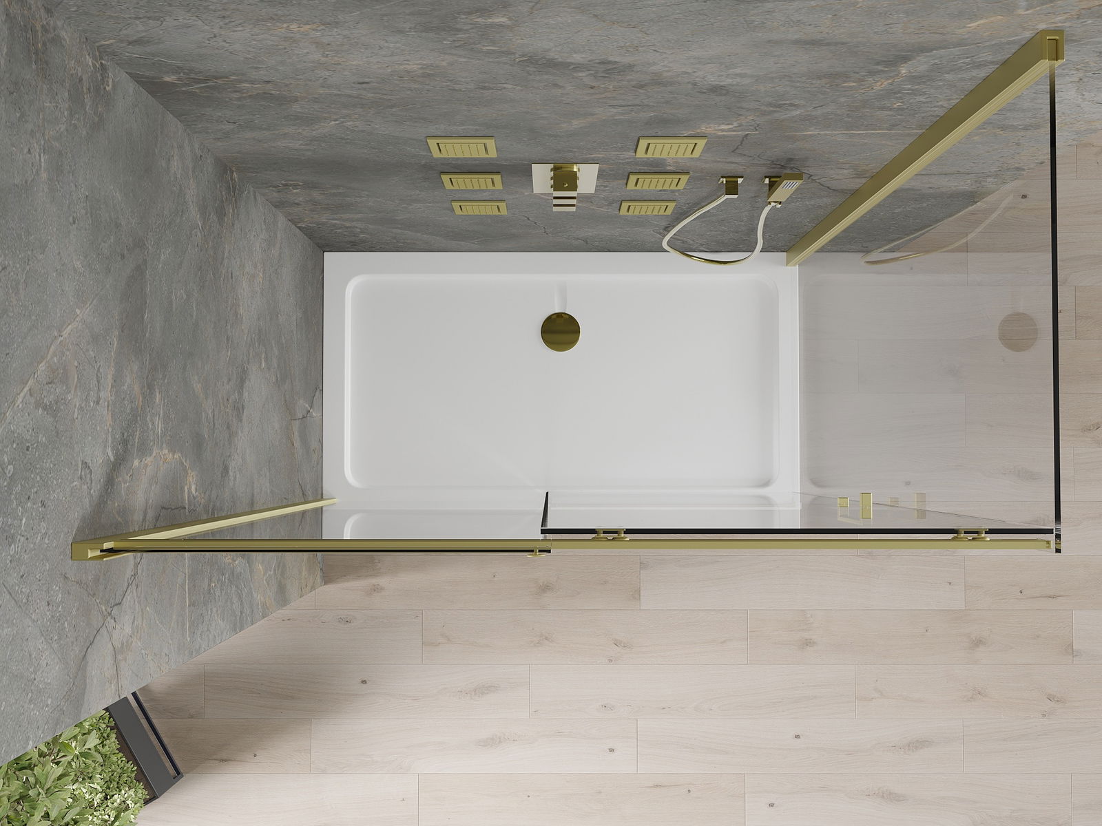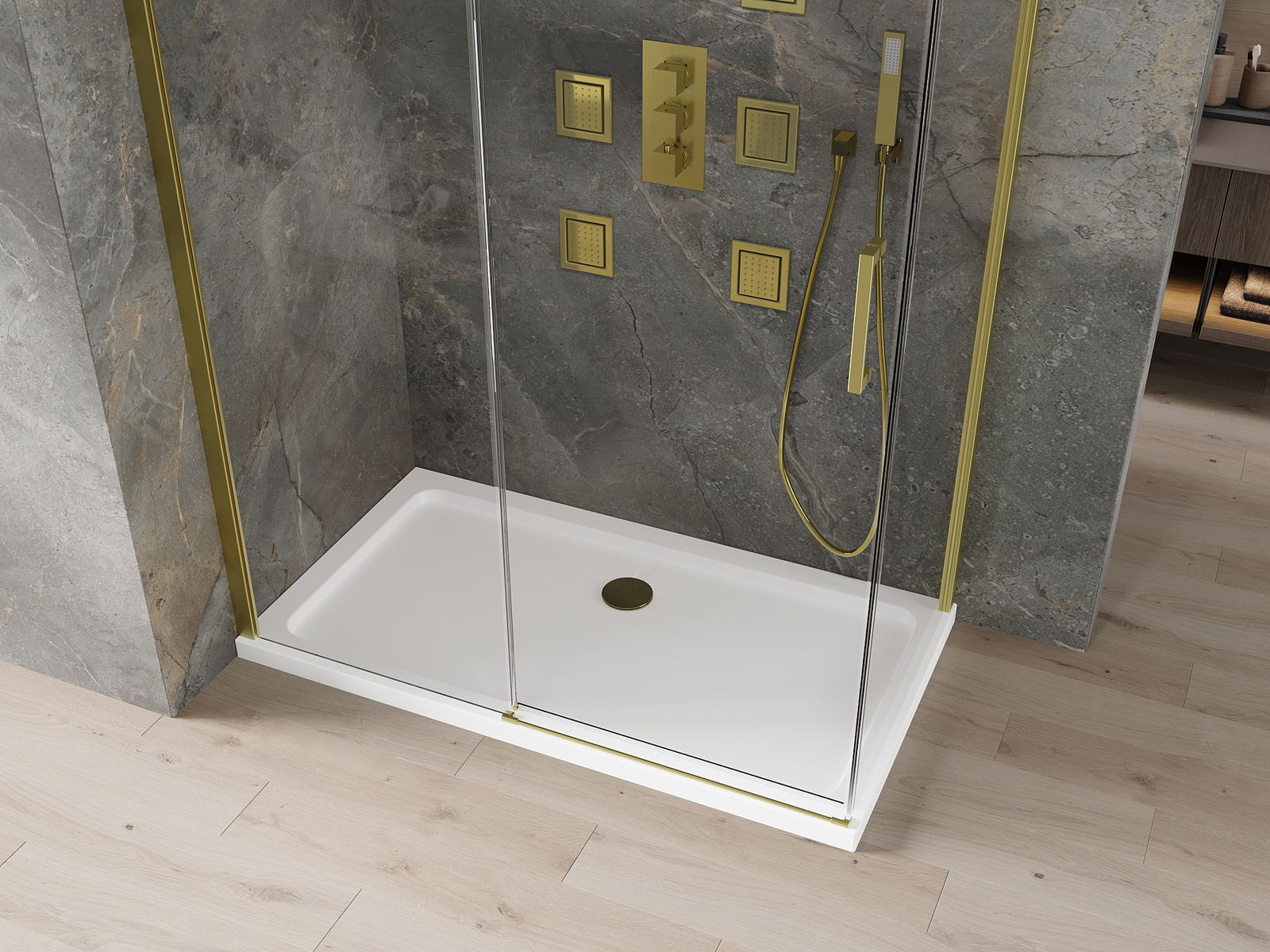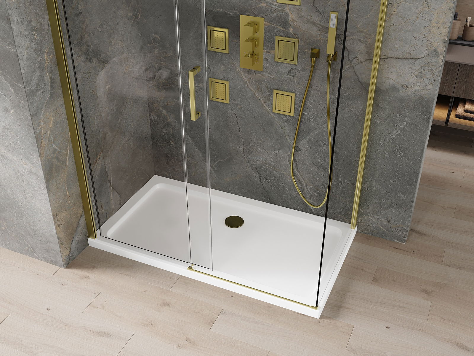 Mexen Omega cabină de duș glisantă 130 x 70 cm, transparent, aurie + cadă Flat - 825-130-070-50-00-4010
