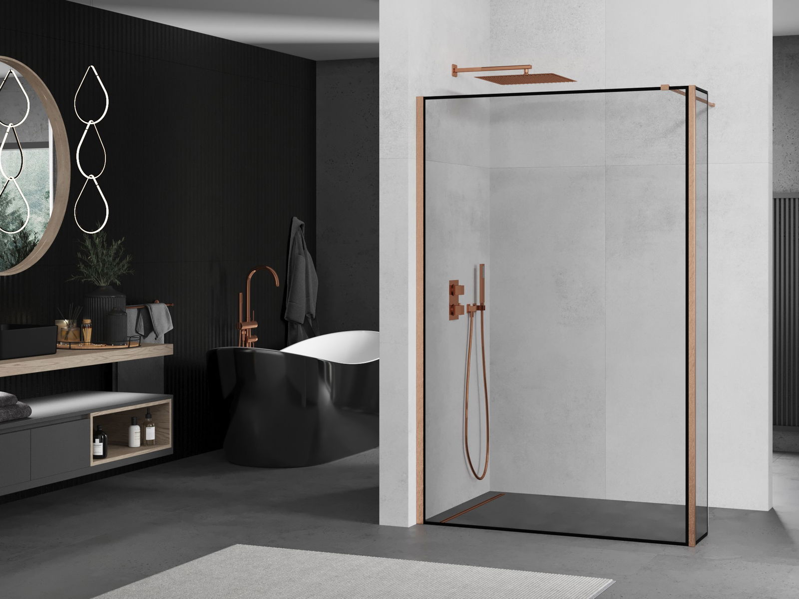 Mexen Kioto panou de duș Walk-in 160 x 40 cm, cadru negru, cupru periat - 800-160-212-65-70-040