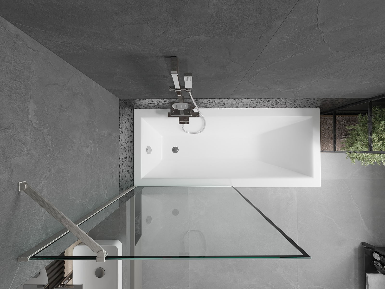 O protecție eficientă împotriva vărsării apei în timpul băii. Paravanul are garnituri care se potrivesc perfect cu suprafața de sticlă și marginea căzii. O soluție funcțională care asigură siguranță și întreținere ușoară a curățeniei.
