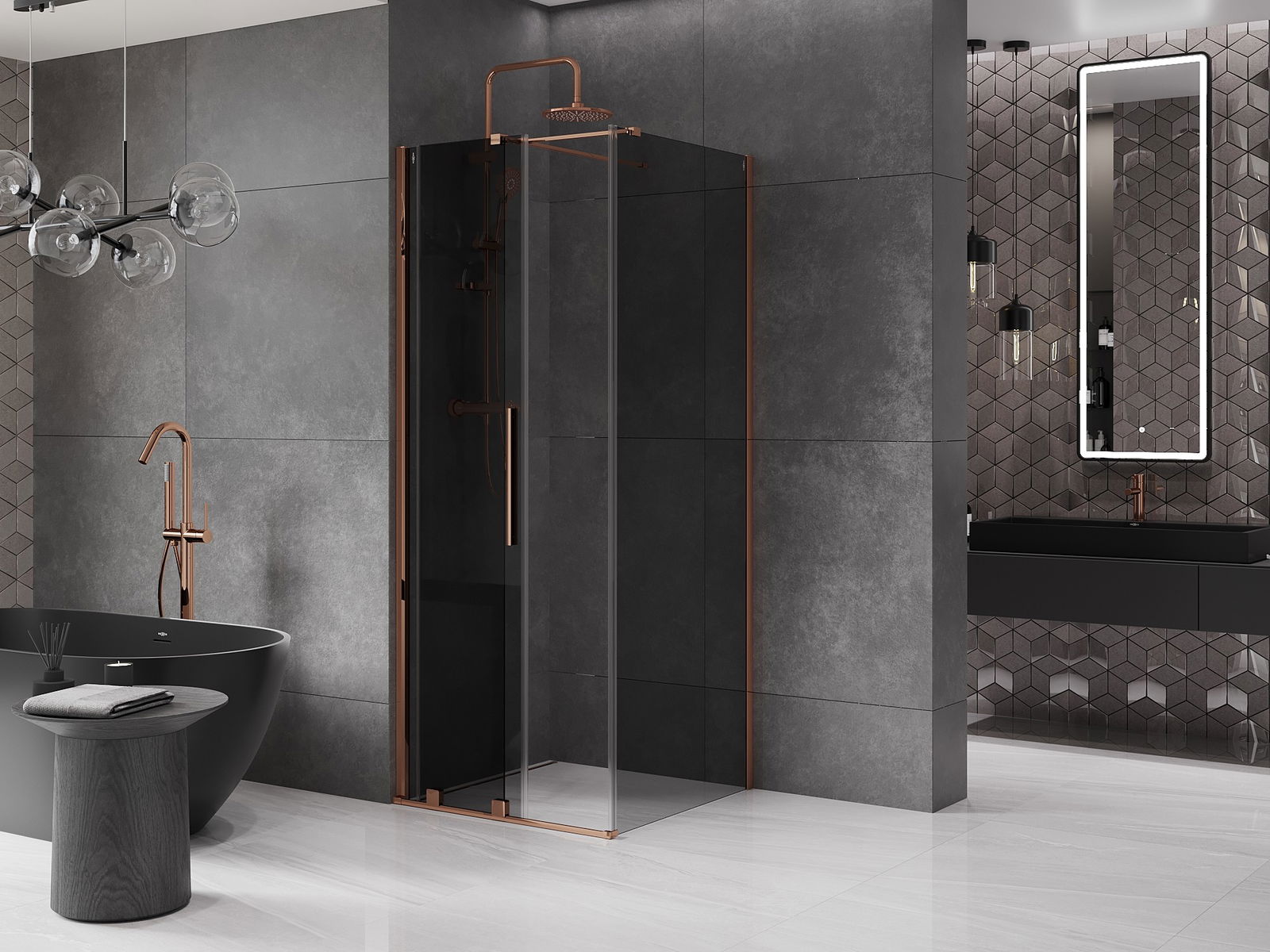 Mexen Velar cabina de duș glisantă 90 x 90 cm, grafit, aur roz - 871-090-090-41-60