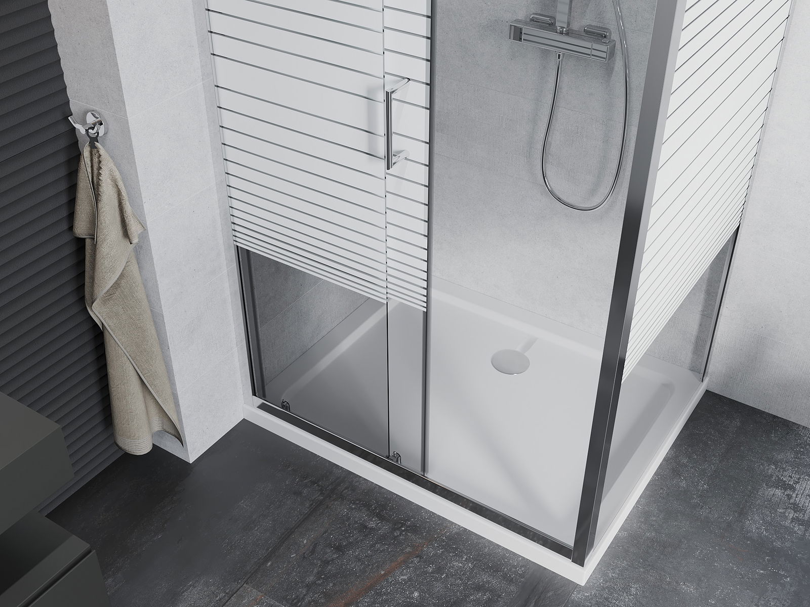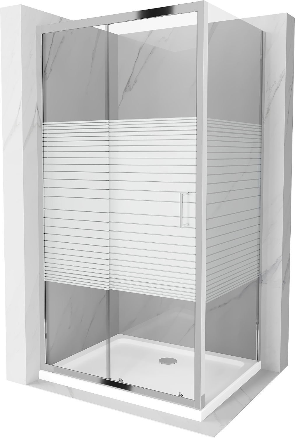 Mexen Apia cabina de duș culisantă 110 x 80 cm, dungi albe, crom + cadă Flat - 840-110-080-01-20-4010