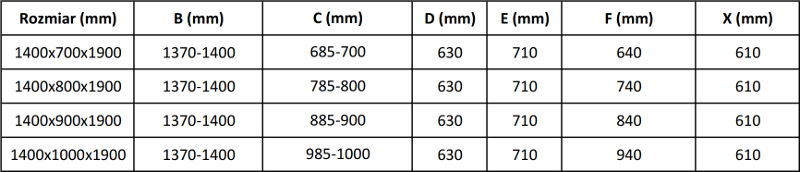 Dimensiune: 140x70 cm (uși 140 cm, perete 70 cm)
