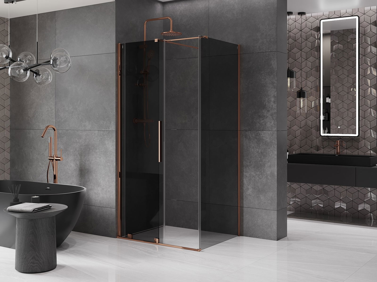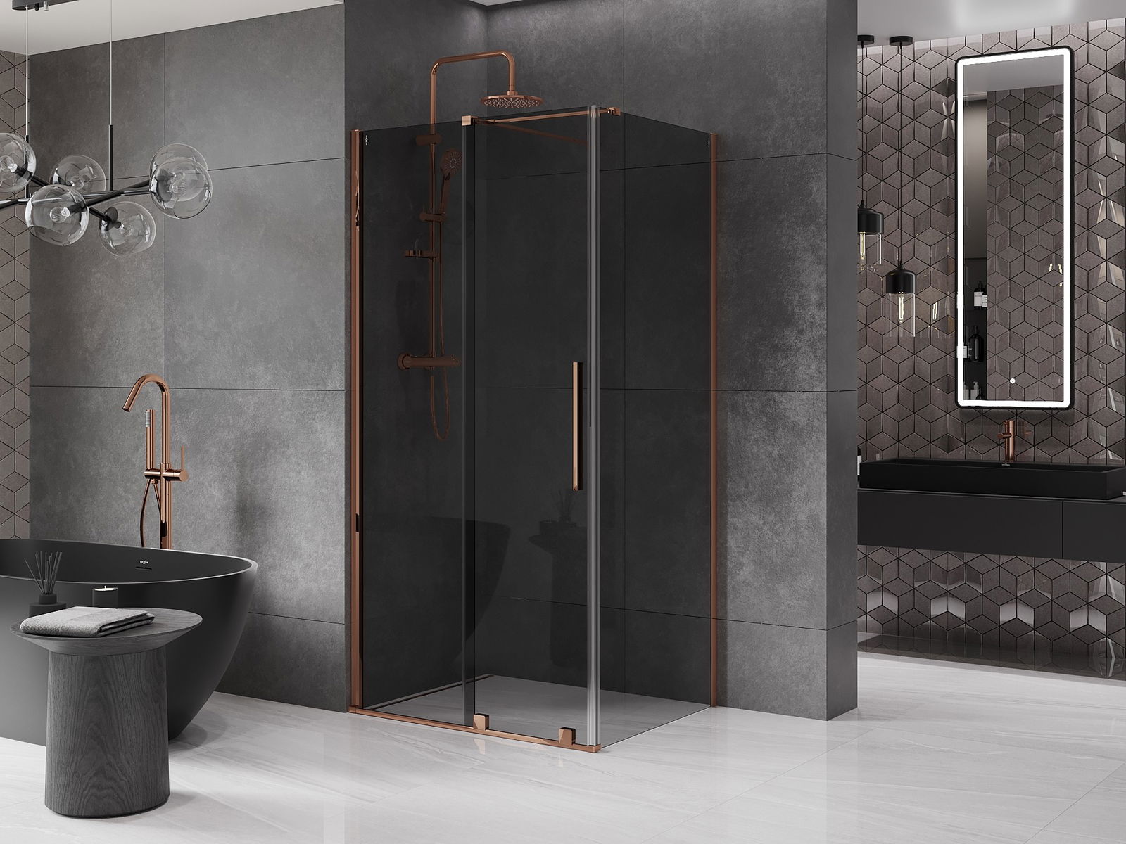 Mexen Velar cabină de duș culisantă 100 x 75 cm, grafit, aur roz - 871-100-075-41-60