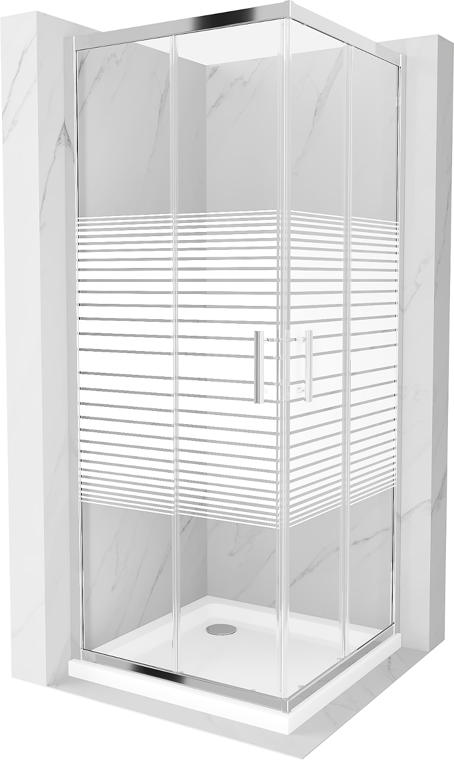 Cabină de duș pătrată Mexen Rio 80 x 80 cm, benzi albe, crom + cadă de duș Flat, alb - 860-080-080-01-20-4010