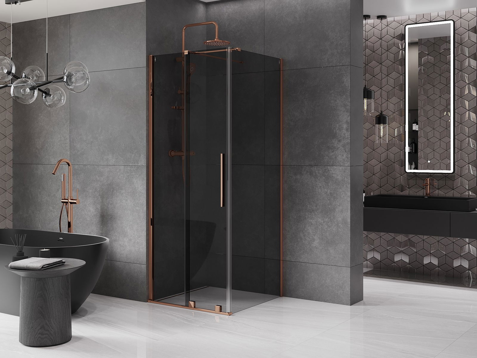 Mexen Velar cabină de duș culisantă 110 x 110 cm, grafit, aur roz - 871-110-110-41-60