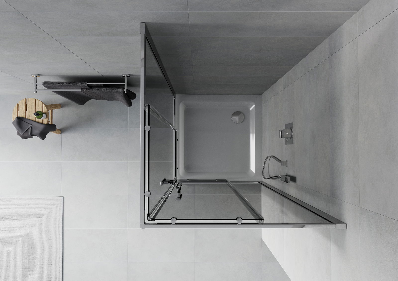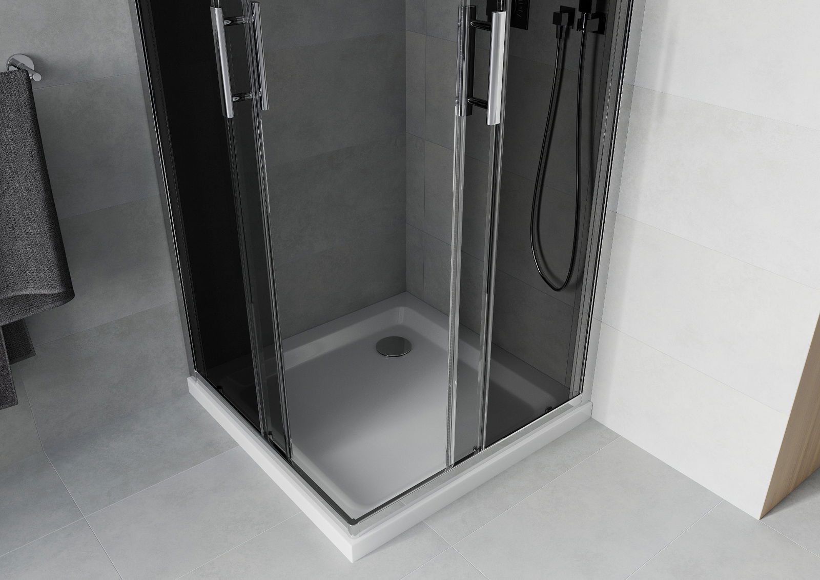 Mexen Rio cabină de duș pătrată 90 x 90 cm, grafit, crom + cadă de duș Flat, alb - 860-090-090-01-40-4010