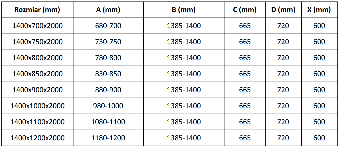 Dimensiune: 140x90 cm (uși 140 cm, perete 90 cm)