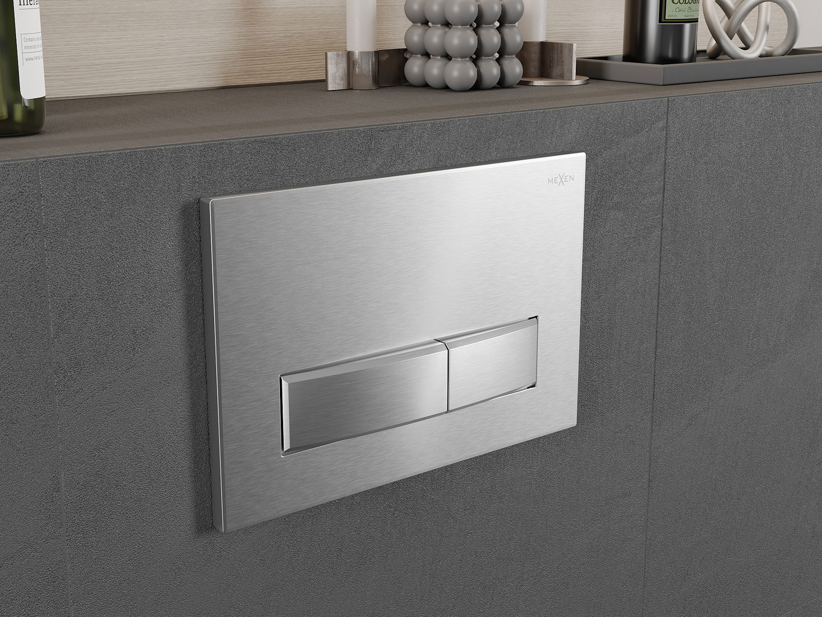 Butonul se potrivește cadrului din seria Mexen Fenix Slim, în care este posibil să se instaleze din față. O soluție populară și practică, în special în băi, unde accesul la buton din față este mai confortabil.