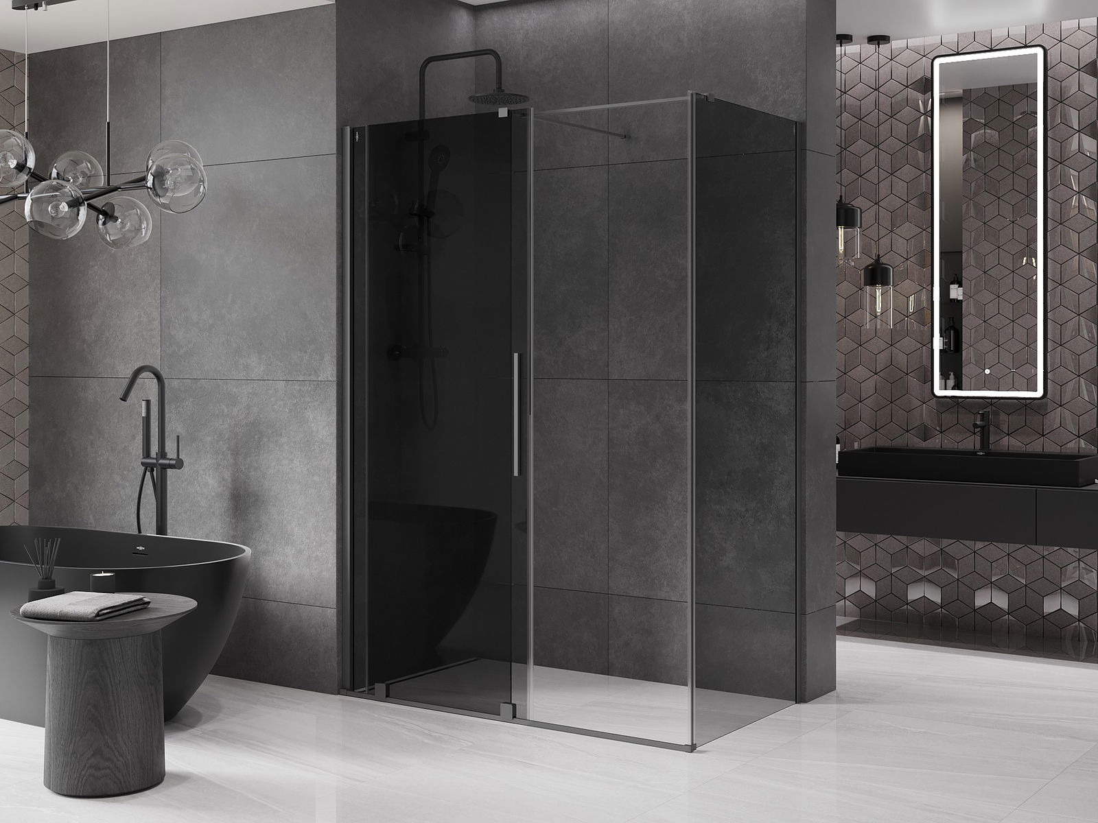 Mânerul practic și confortabil este realizat din oțel inoxidabil. Forma modernă, combinată cu un finisaj asortat cu culoarea profilelor, conferă ansamblului un aspect modern și elegant, subliniind estetica fiecărei băi.