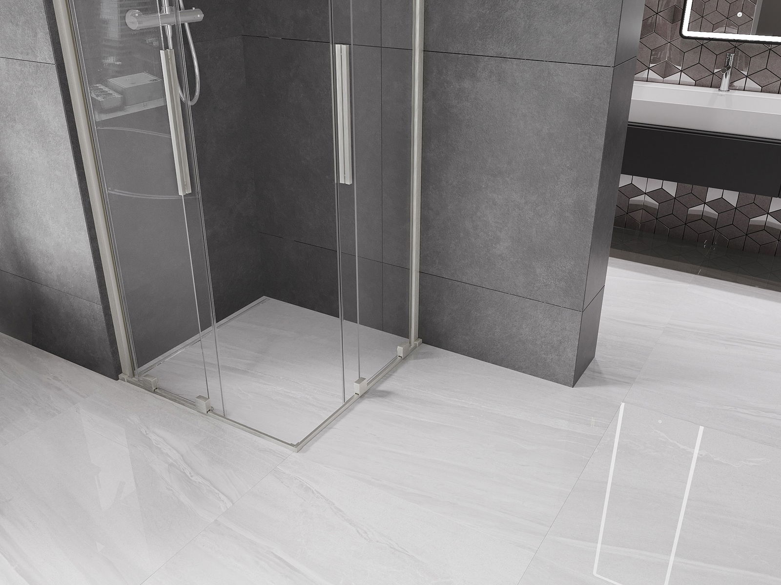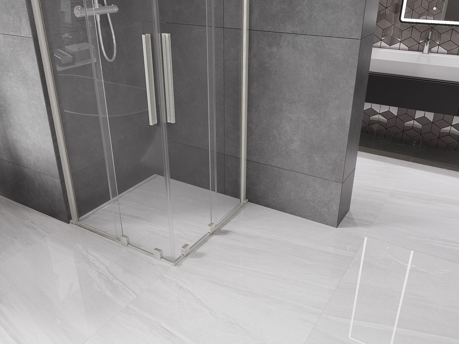 Mânerul practic și confortabil este realizat din oțel inoxidabil. Forma modernă, combinată cu un finisaj asortat cu culoarea profilelor, conferă ansamblului un aspect modern și elegant, subliniind estetica fiecărei băi.