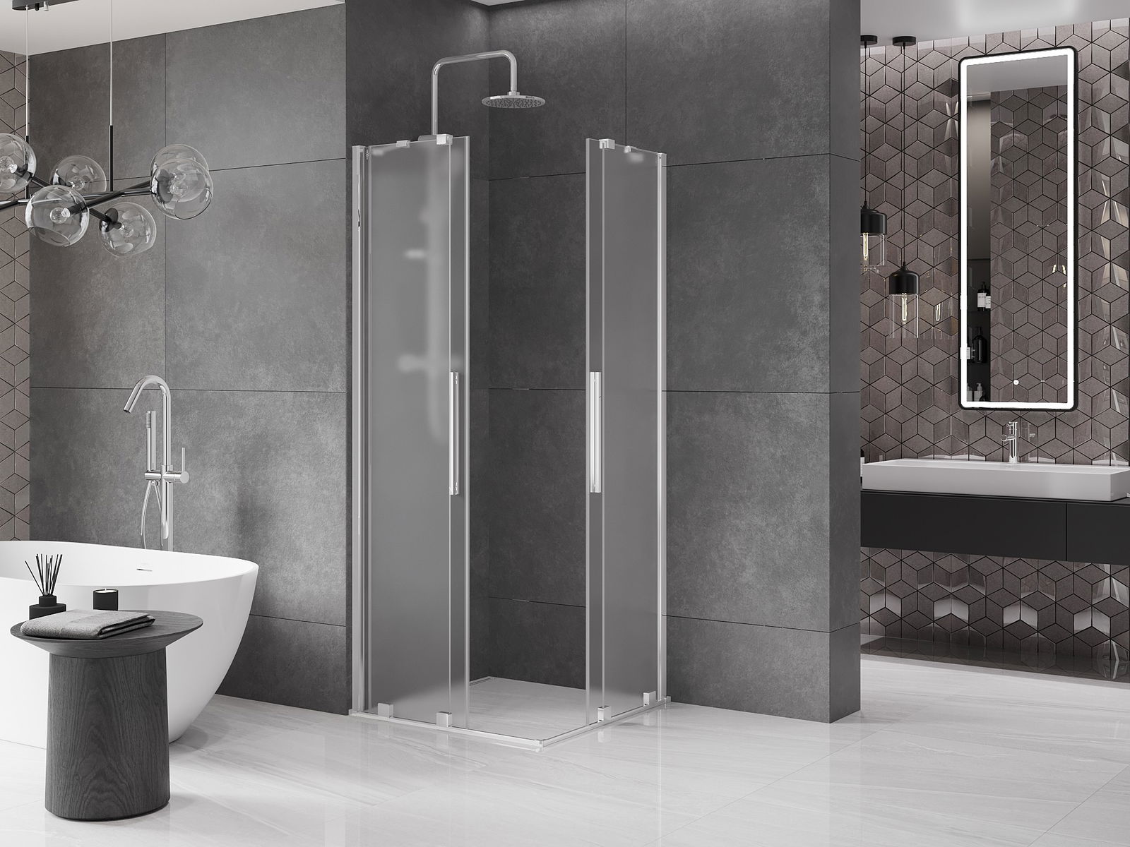 Mânerul practic și confortabil este realizat din oțel inoxidabil. Forma modernă, combinată cu un finisaj asortat cu culoarea profilelor, conferă ansamblului un aspect modern și elegant, subliniind estetica fiecărei băi.