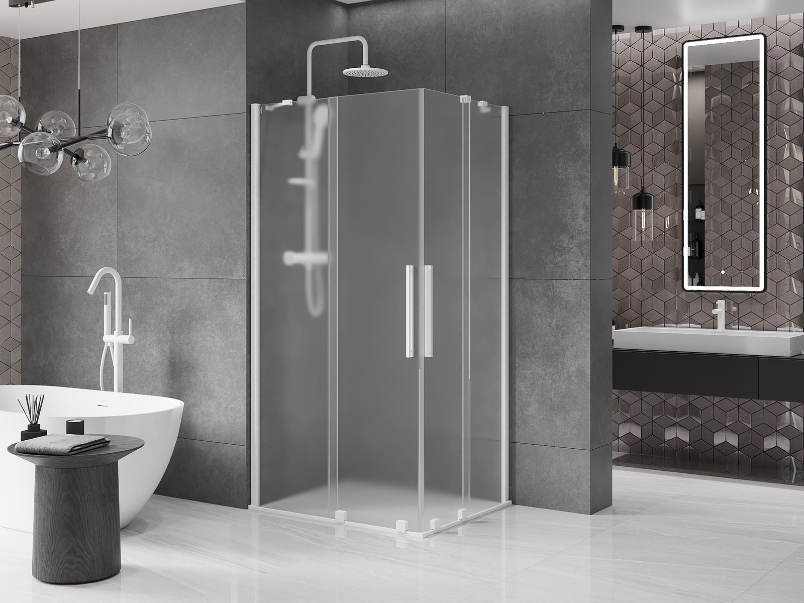 Mexen Velar Cabină de duș glisantă Duo 90 x 80 cm, înghețat, albă - 871-090-080-32-20