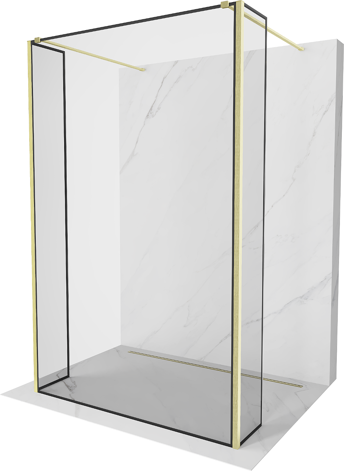 Mexen Kioto perete de duș liber 120 x 30 x 30 cm, cadru negru, auriu periat - 800-120-030-222-55-70-030