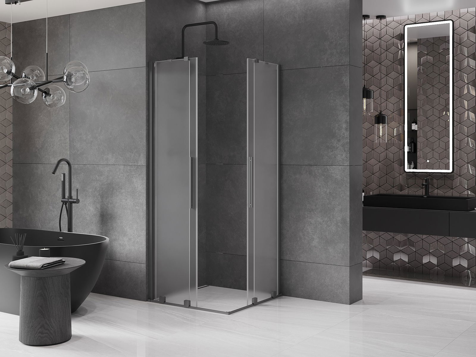 Mânerul practic și confortabil este realizat din oțel inoxidabil. Forma modernă, combinată cu un finisaj asortat cu culoarea profilelor, conferă ansamblului un aspect modern și elegant, subliniind estetica fiecărei băi.