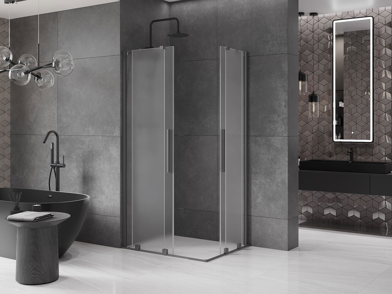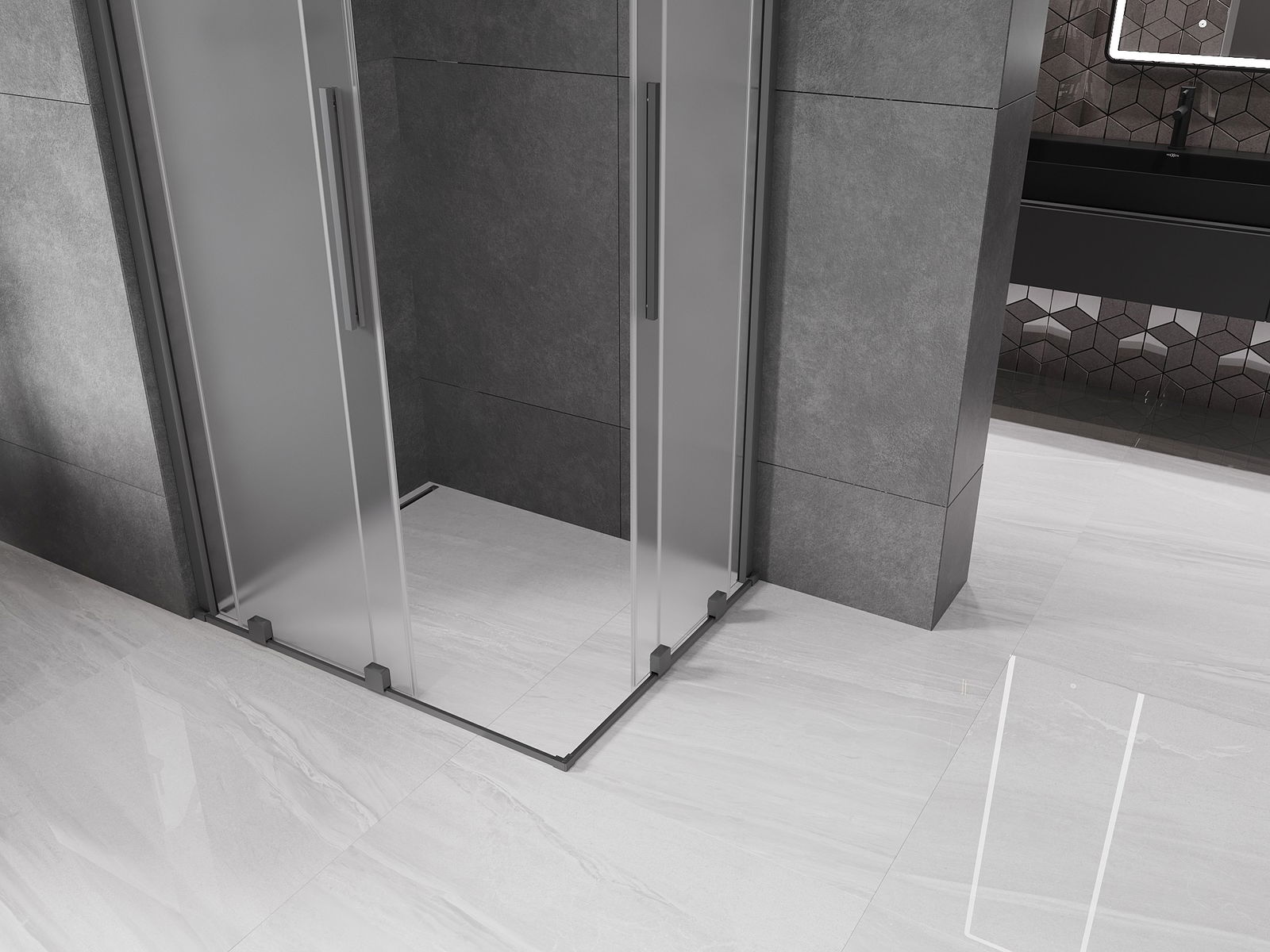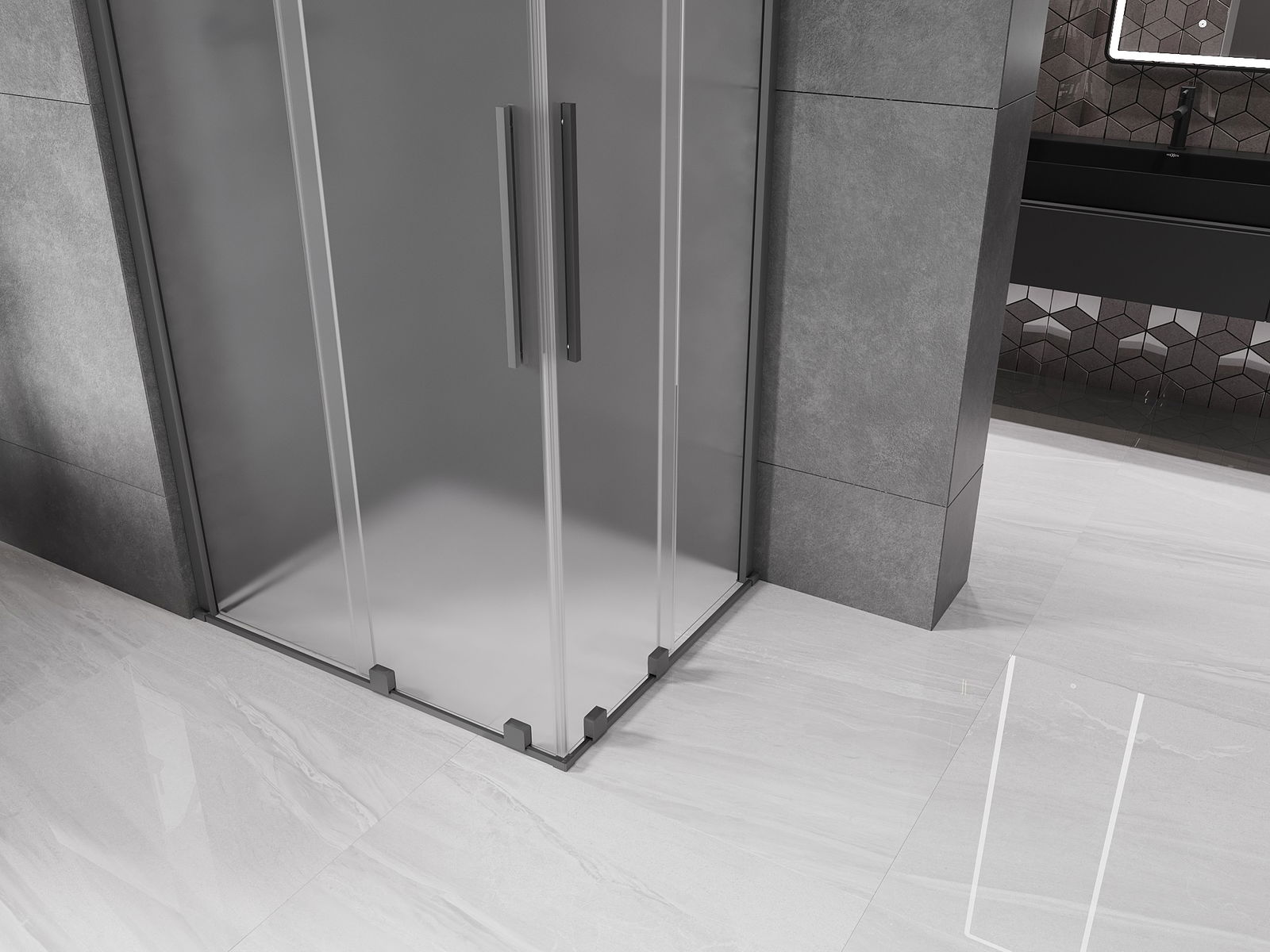 Mexen Velar Duo cabină de duș glisantă 90 x 80 cm, înghețat, gun metal - 871-090-080-32-95