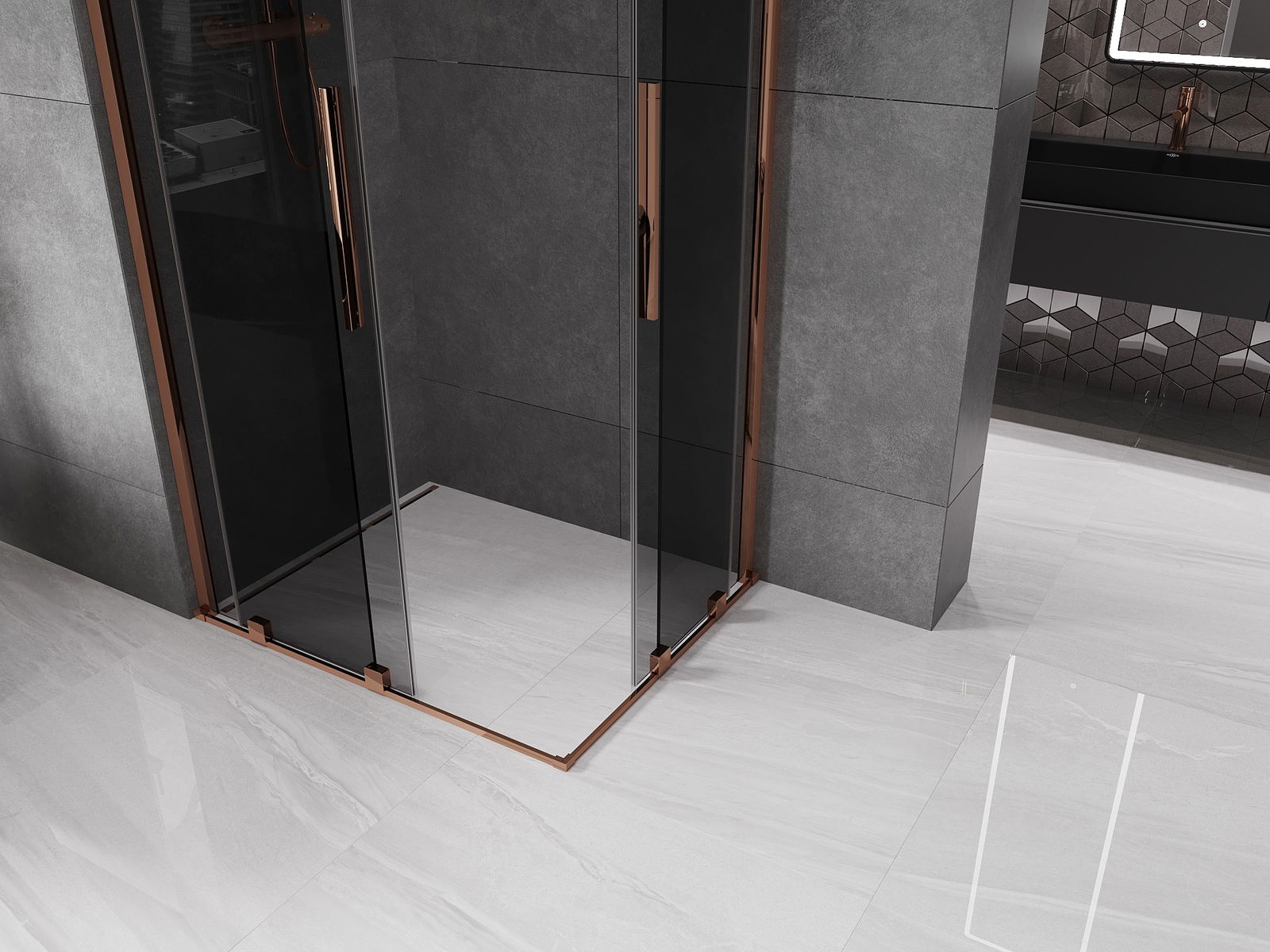 Mexen Velar Duo cabină de duș culisantă 90 x 80 cm, grafit, aur roz - 871-090-080-42-60