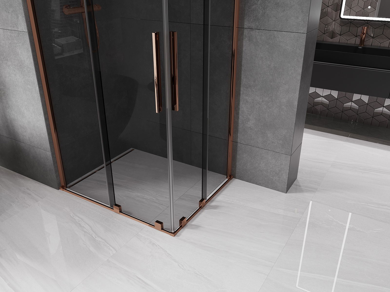 Mexen Velar Cabină de duș Duo culisantă 100 x 90 cm, grafit, aur roz - 871-100-090-42-60