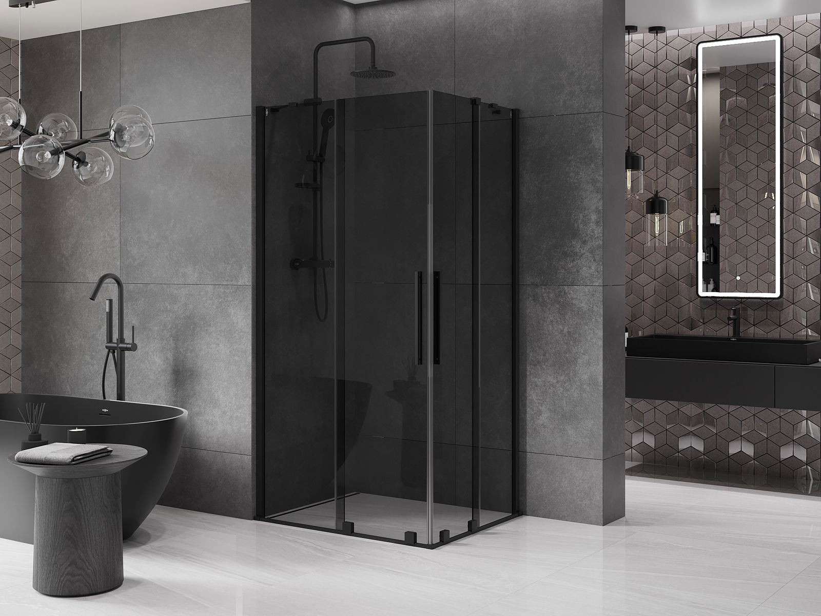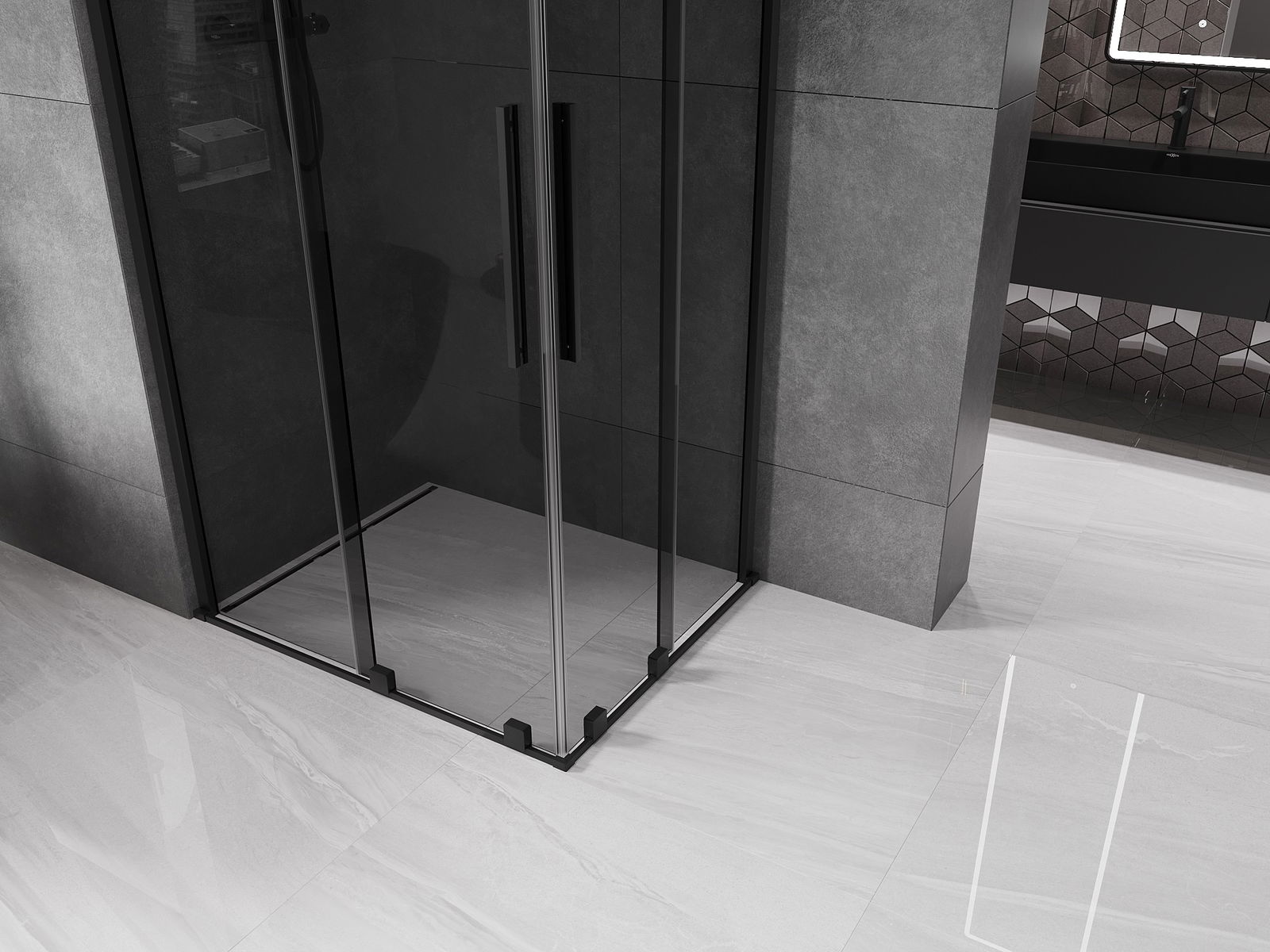 Mexen Velar Cabină de duș Duo culisantă 90 x 80 cm, grafit, neagră - 871-090-080-42-70