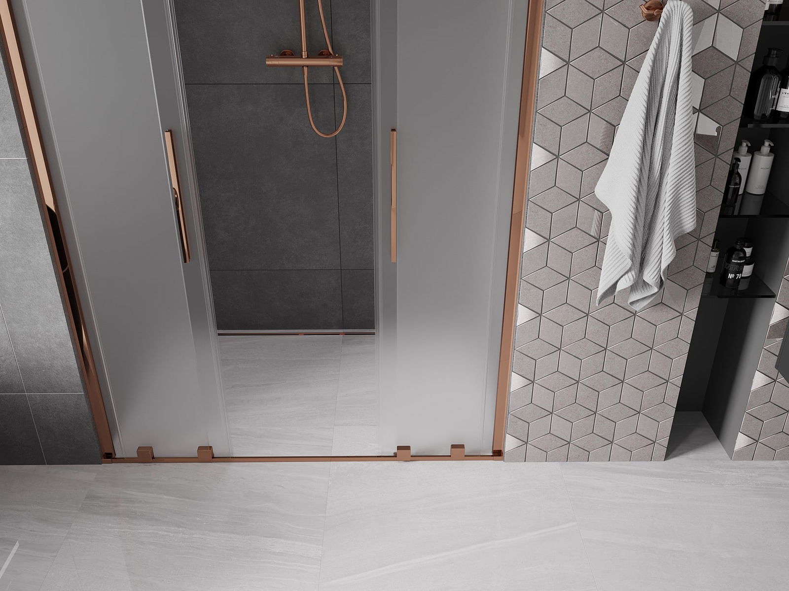 Mexen Velar Duo uși de duș glisante 160 cm, sticlă mată, aur roz - 871-160-000-32-60