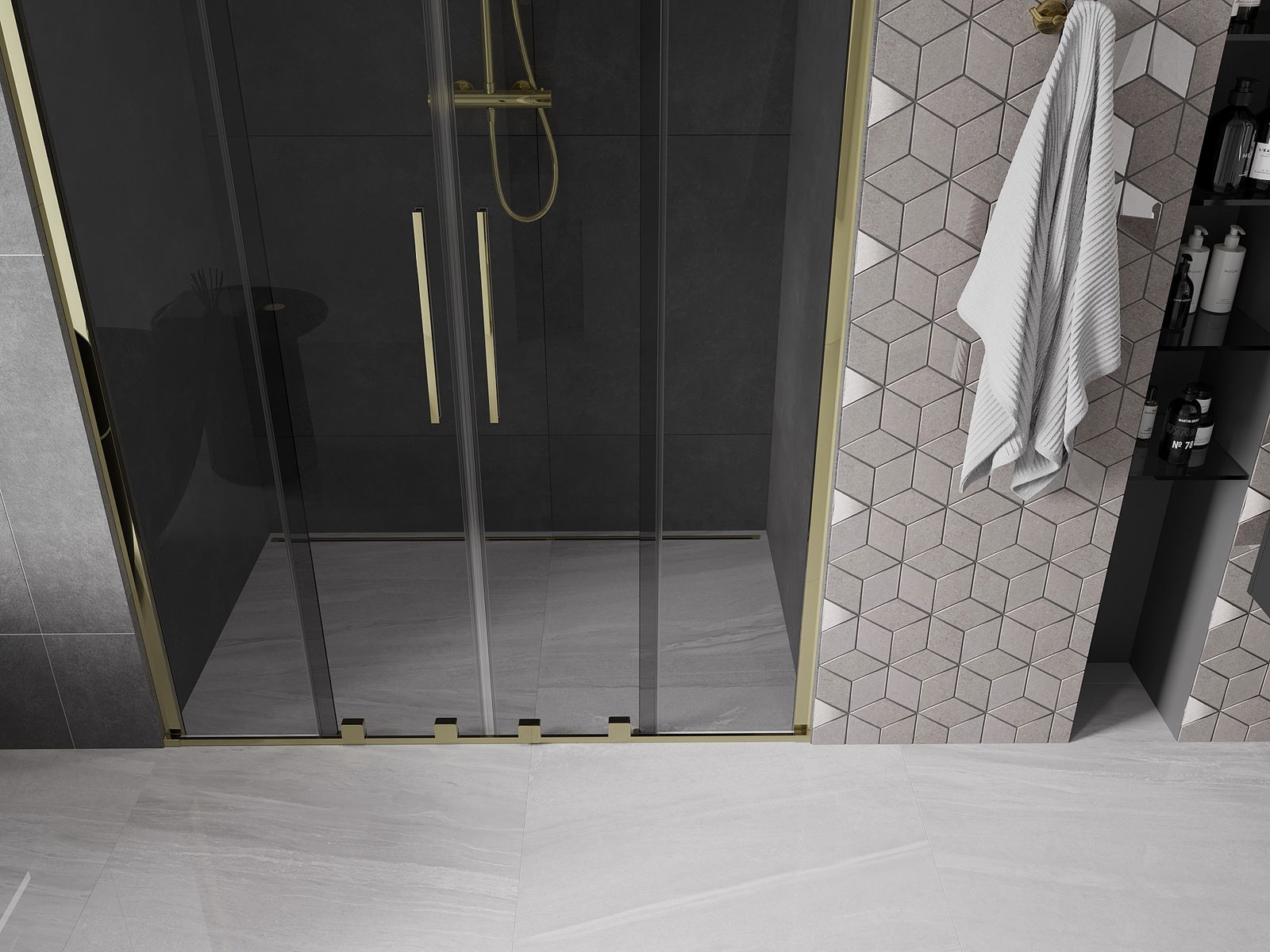Mexen Velar Duo uși de duș glisante 140 cm, grafit, auriu - 871-140-000-42-50
