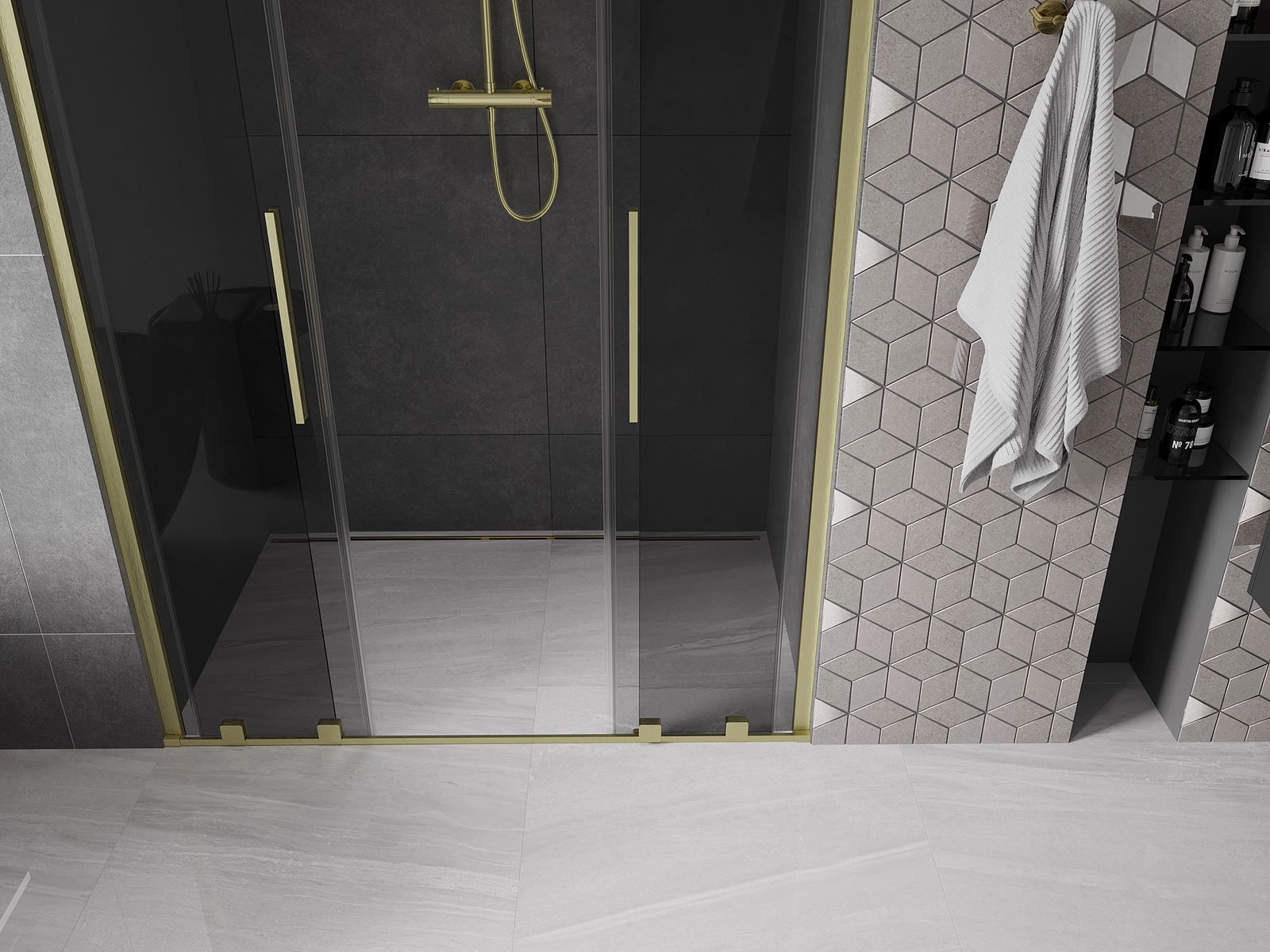 Mexen Velar Duo uși de duș culisante 160 cm, grafit, finisaj auriu periat - 871-160-000-42-55