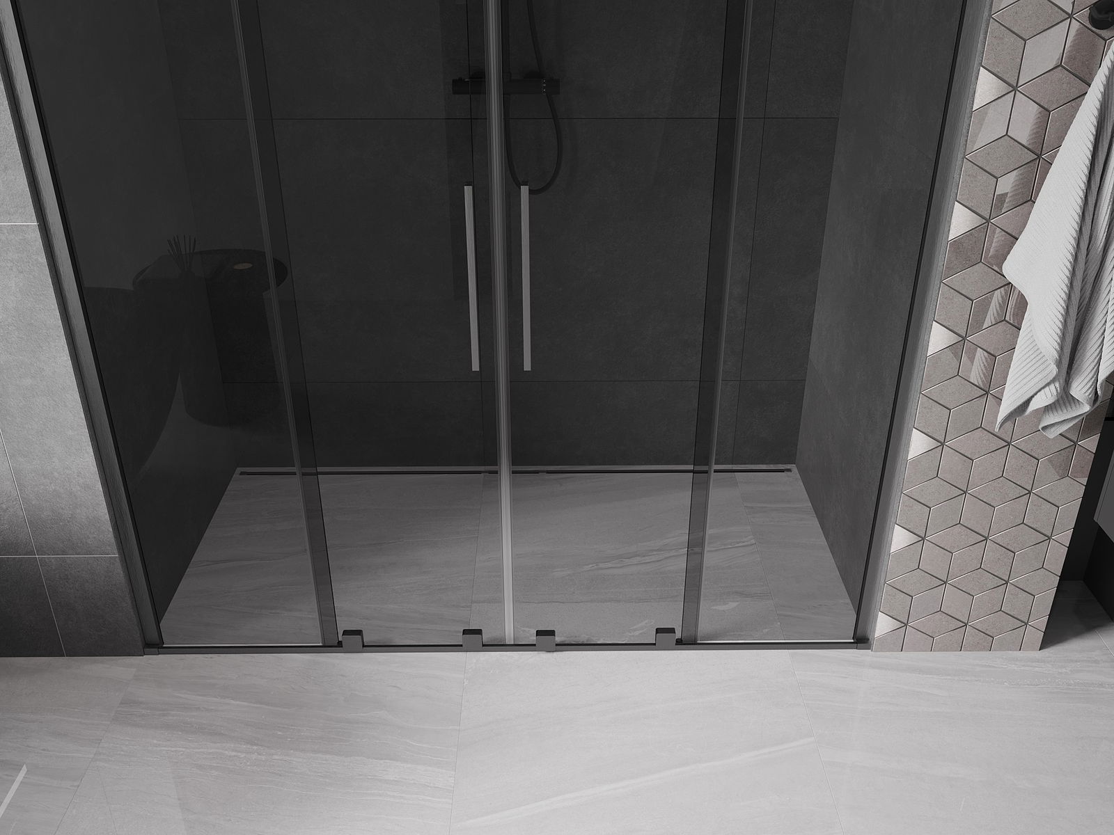 Mexen Velar Duo uși de duș glisante 170 cm, grafit, gun gray periat - 871-170-000-42-66