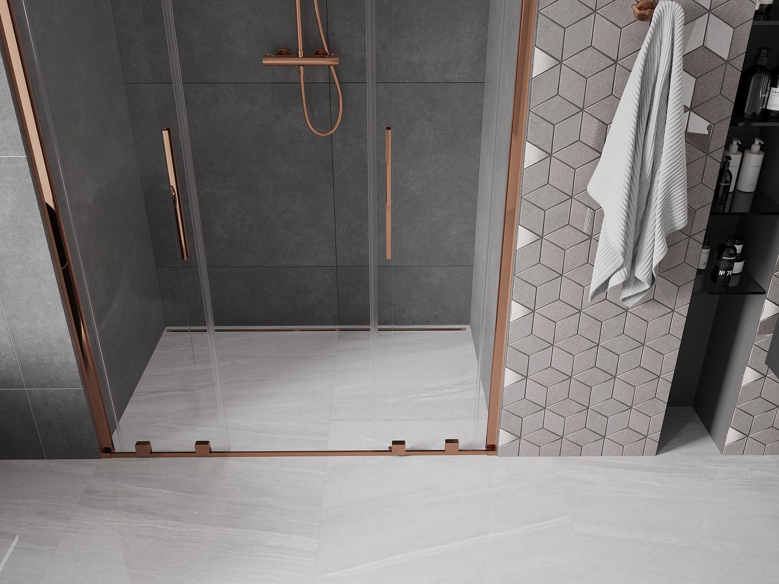 Mexen Velar L Duo ușă de duș glisantă 160 cm, transparentă, aur roz - 871-160-003-02-60
