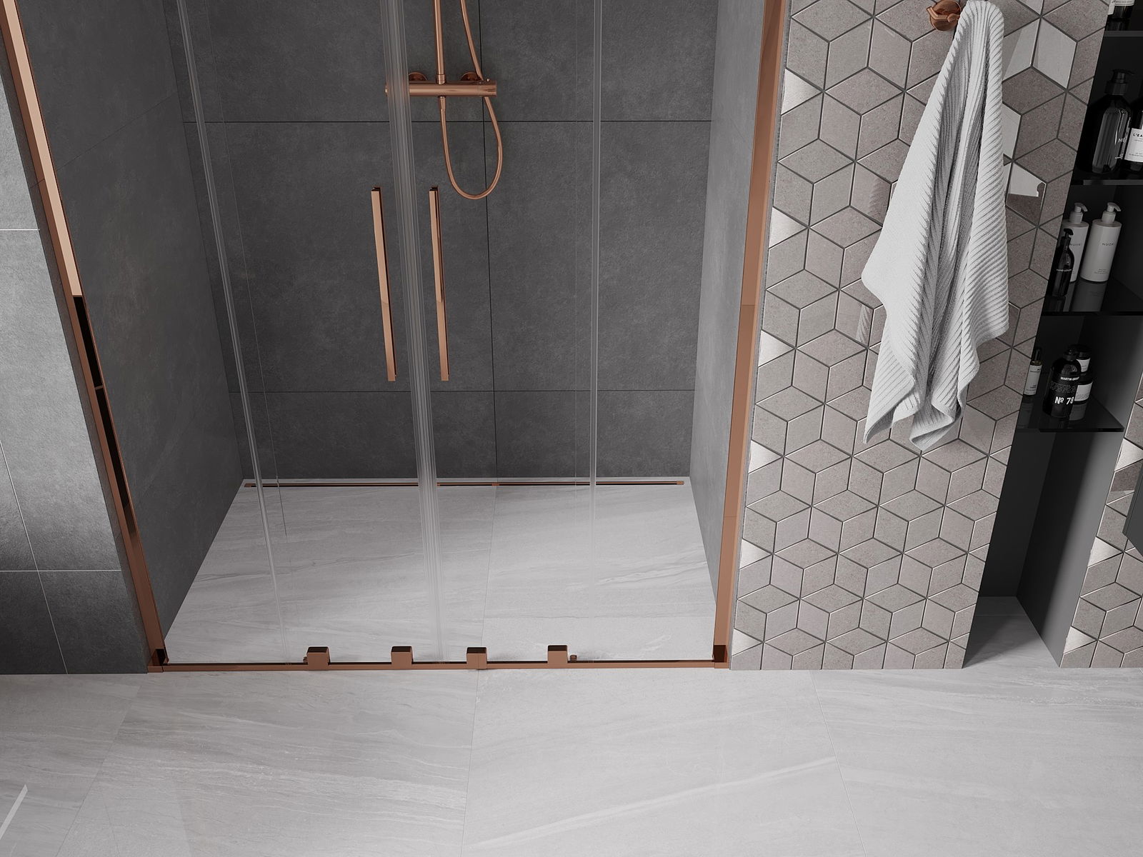 Mânerul practic și confortabil este realizat din oțel inoxidabil. Forma modernă, combinată cu un finisaj asortat cu culoarea profilelor, conferă ansamblului un aspect modern și elegant, subliniind estetica fiecărei băi.