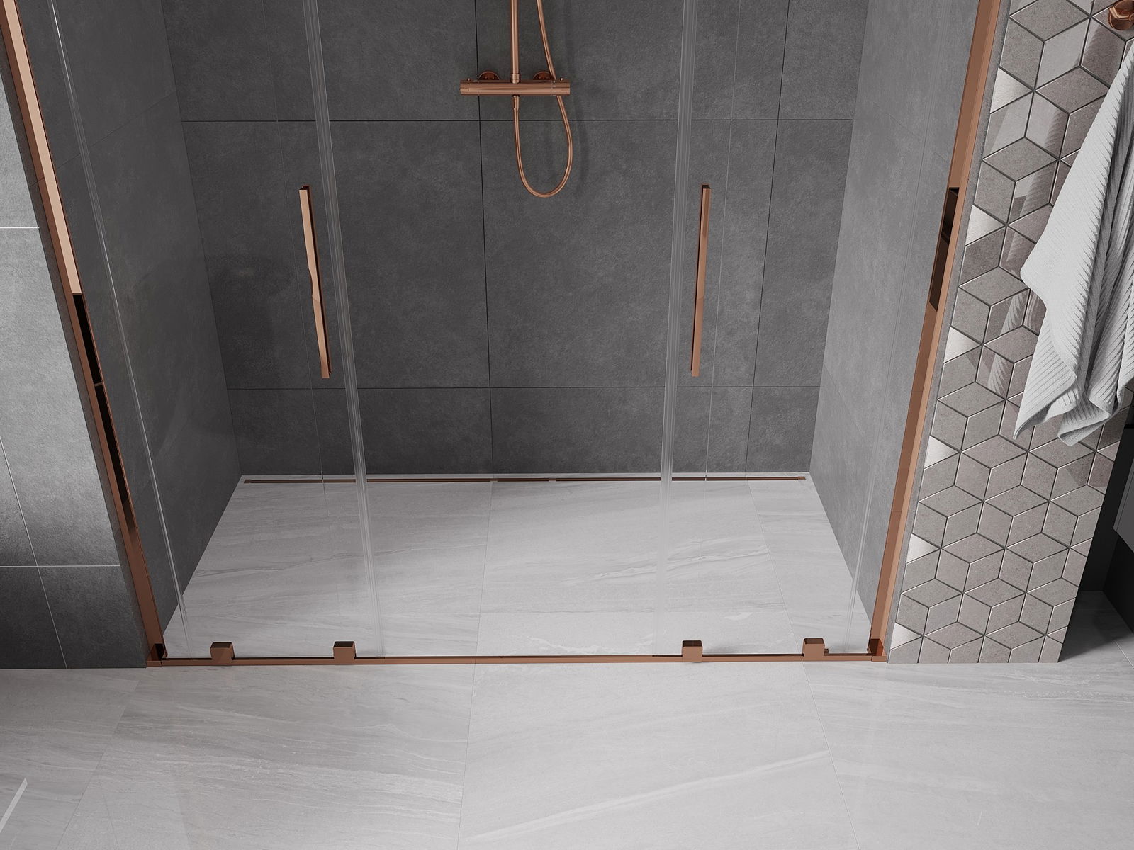 Mexen Velar L Duo uși de duș culisante 200 cm, transparent, aur roz - 871-200-003-02-60