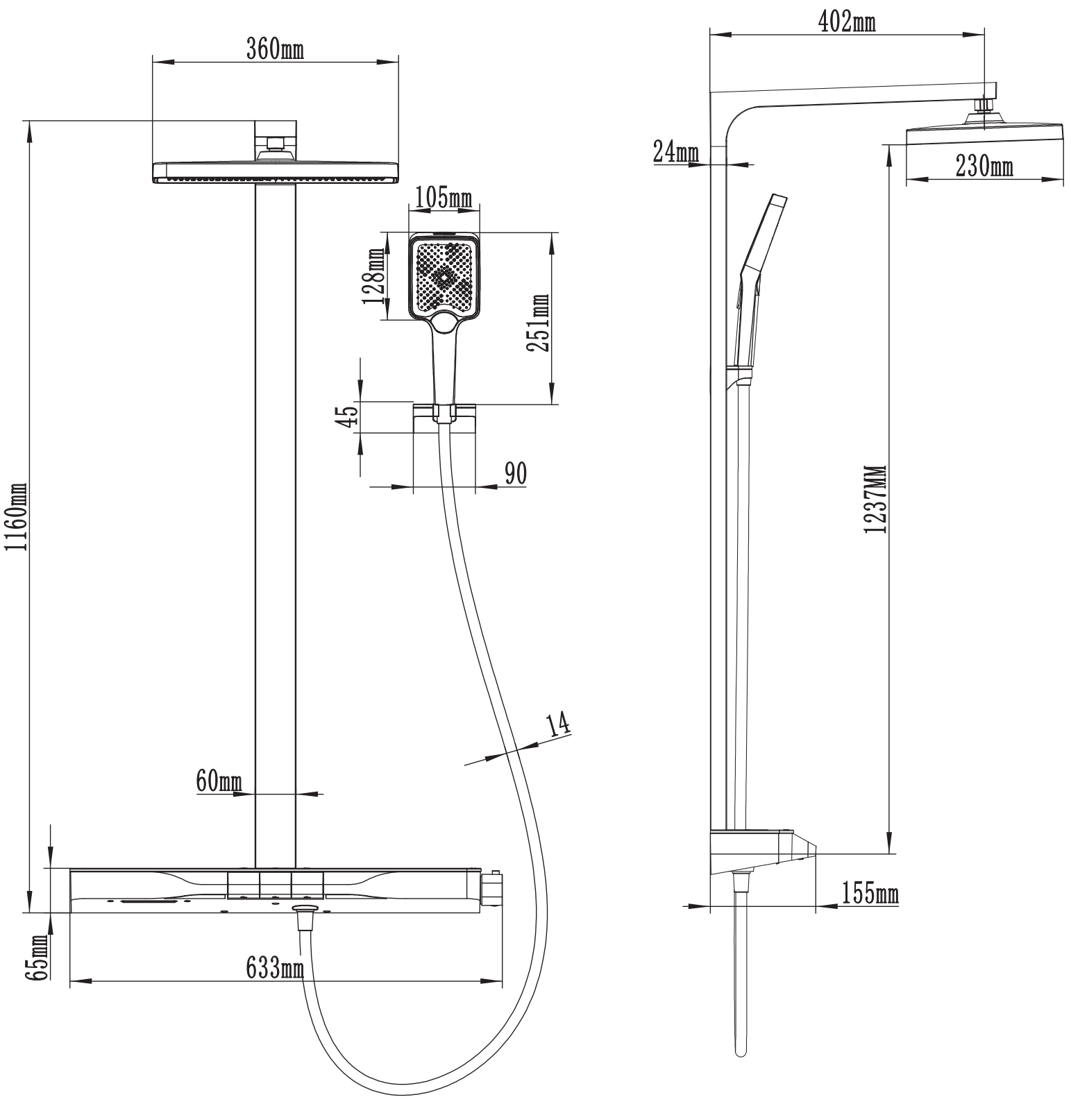 Dimensiunea dușului de ploaie: 230 x 360 mm