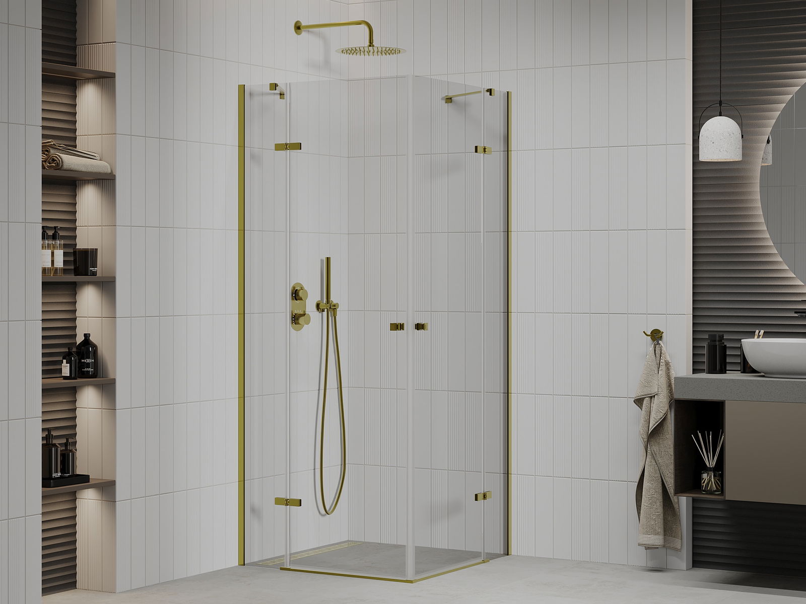 Mexen Roma Duo cabină de duș cu deschidere batantă 70 x 70 cm, transparentă, aurie - 854-070-070-50-00-02