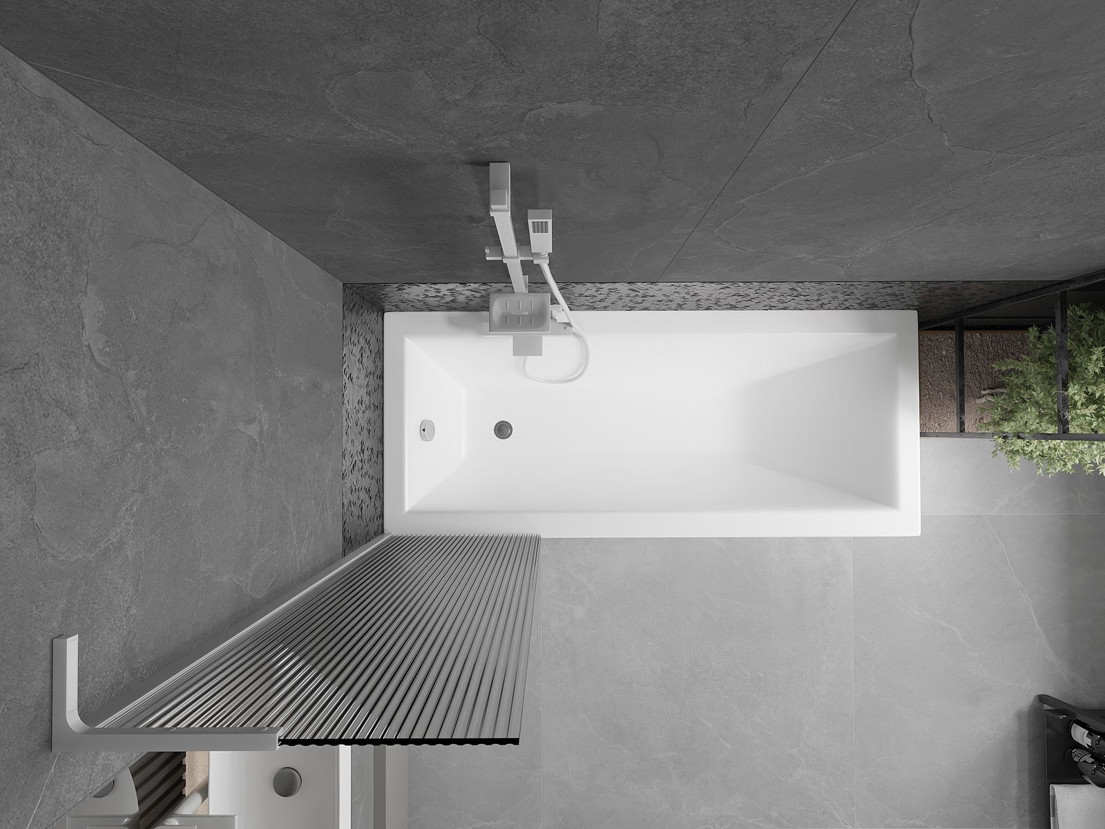 O protecție eficientă împotriva vărsării apei în timpul băii. Paravanul are garnituri care se potrivesc perfect cu suprafața de sticlă și marginea căzii. O soluție funcțională care asigură siguranță și întreținere ușoară a curățeniei.