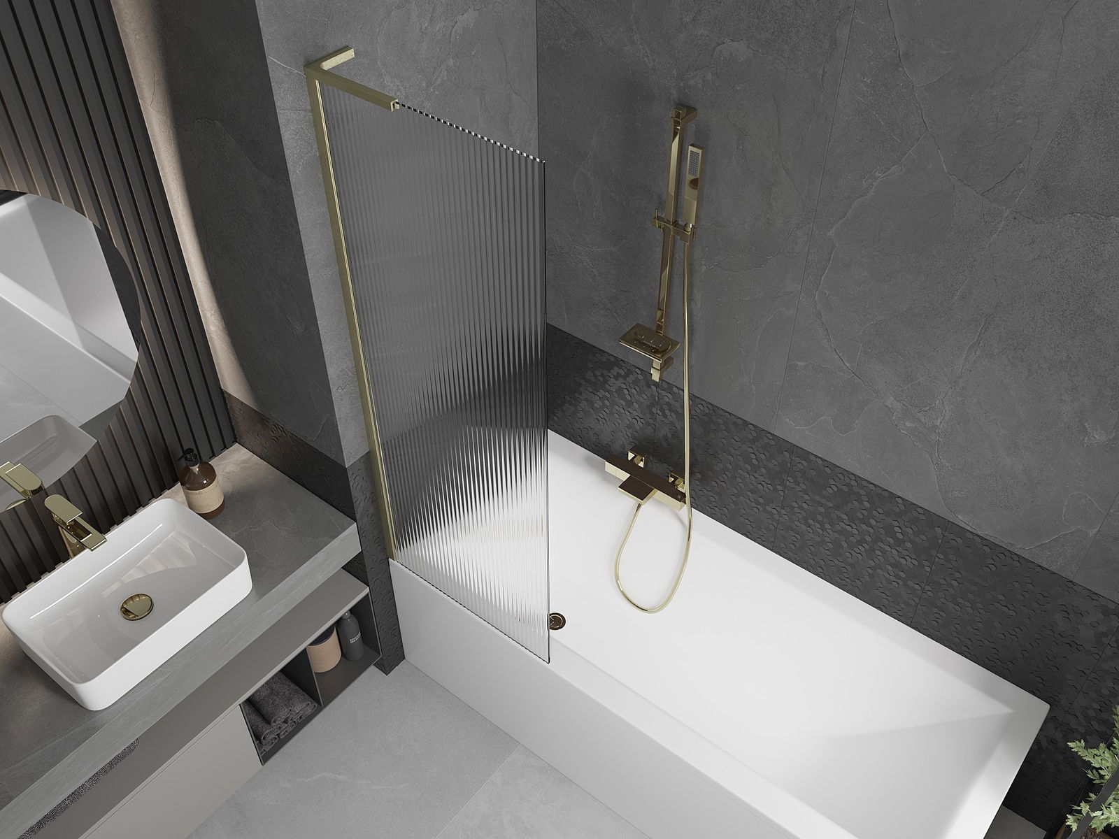 Mexen Next L paravan pentru cadă 1-canată 60 x 150 cm, dungi, auriu periat - 895-060-000-03-09-55