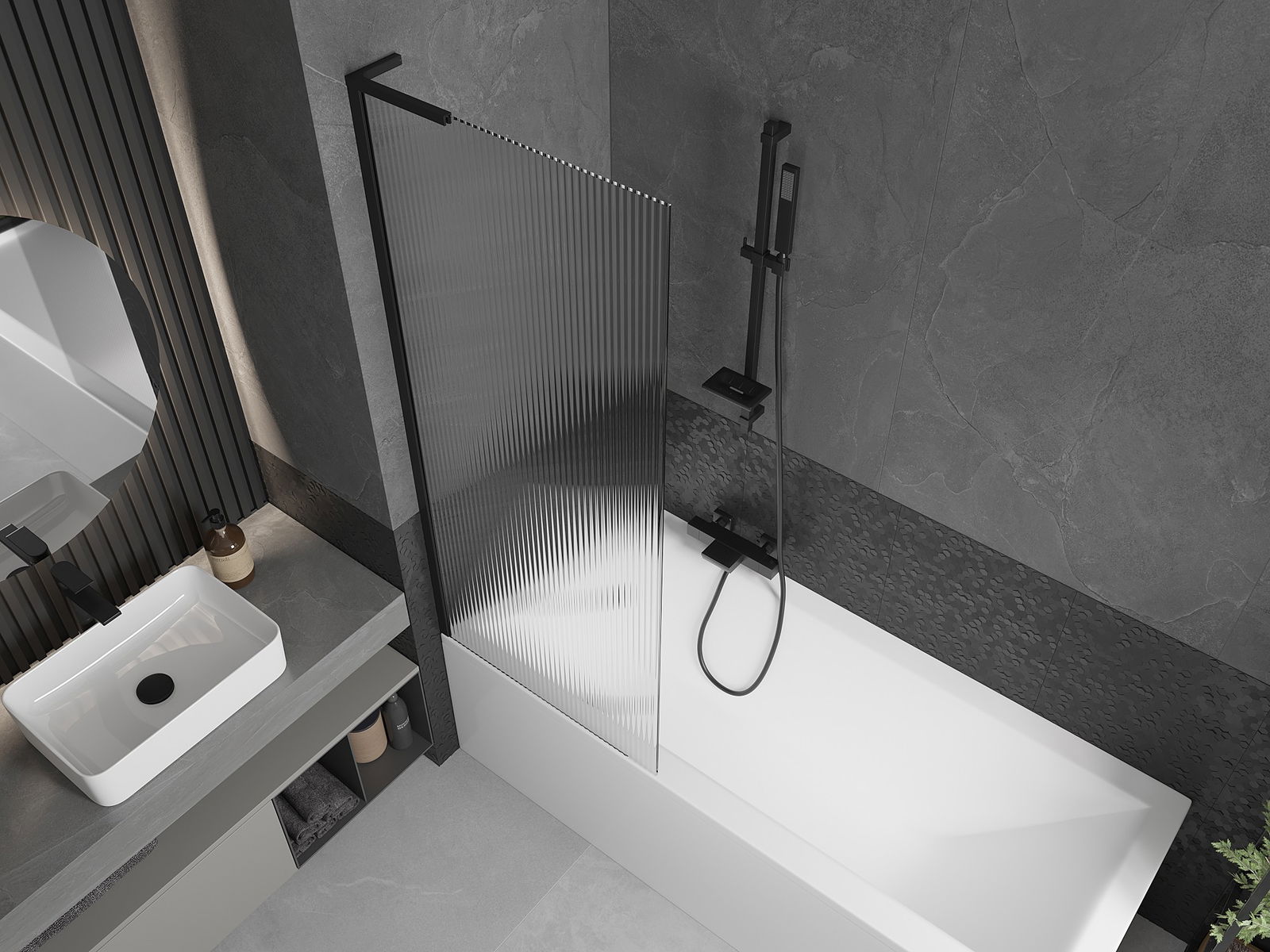 Mexen Next L paravan pentru cadă cu 1 canat 70 x 150 cm, dungi, negru - 895-070-000-03-09-70