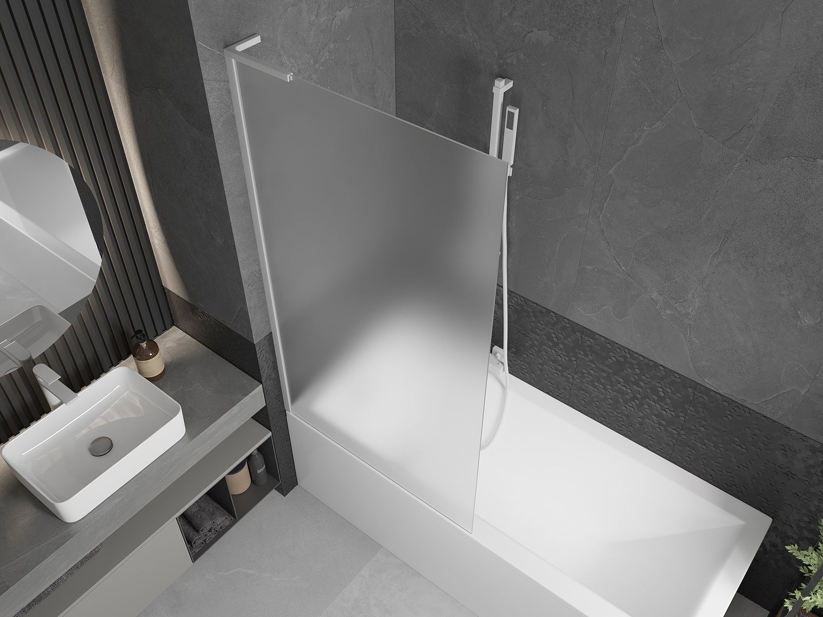 O protecție eficientă împotriva vărsării apei în timpul băii. Paravanul are garnituri care se potrivesc perfect cu suprafața de sticlă și marginea căzii. O soluție funcțională care asigură siguranță și întreținere ușoară a curățeniei.