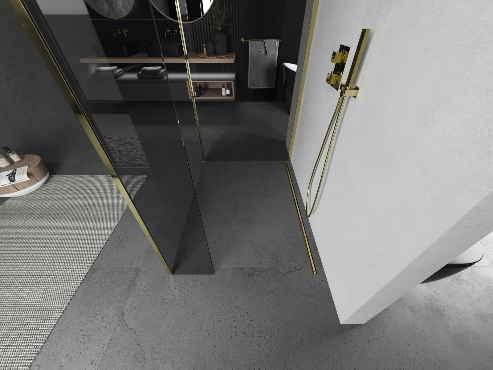 Mexen Kioto perete de duș Walk-in 90 x 70 x 40 cm, transparent, auriu - 800-090-070-221-50-00-040
