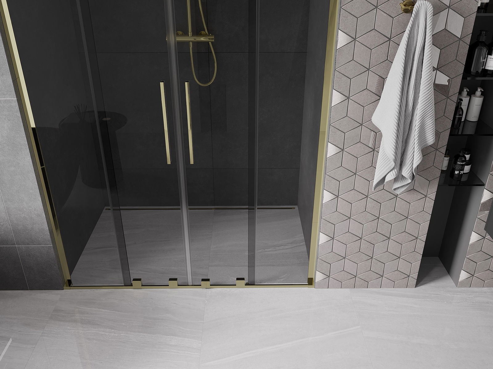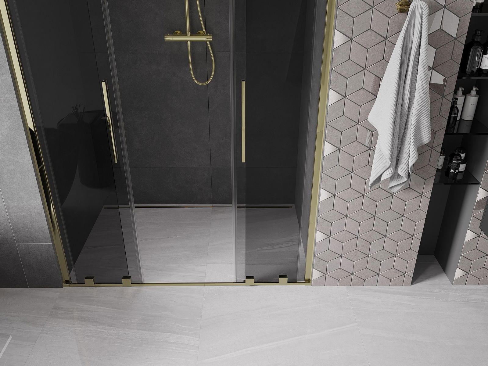 Mexen Velar L Duo uși de duș glisante 160 cm, grafit, aurii - 871-160-003-42-50