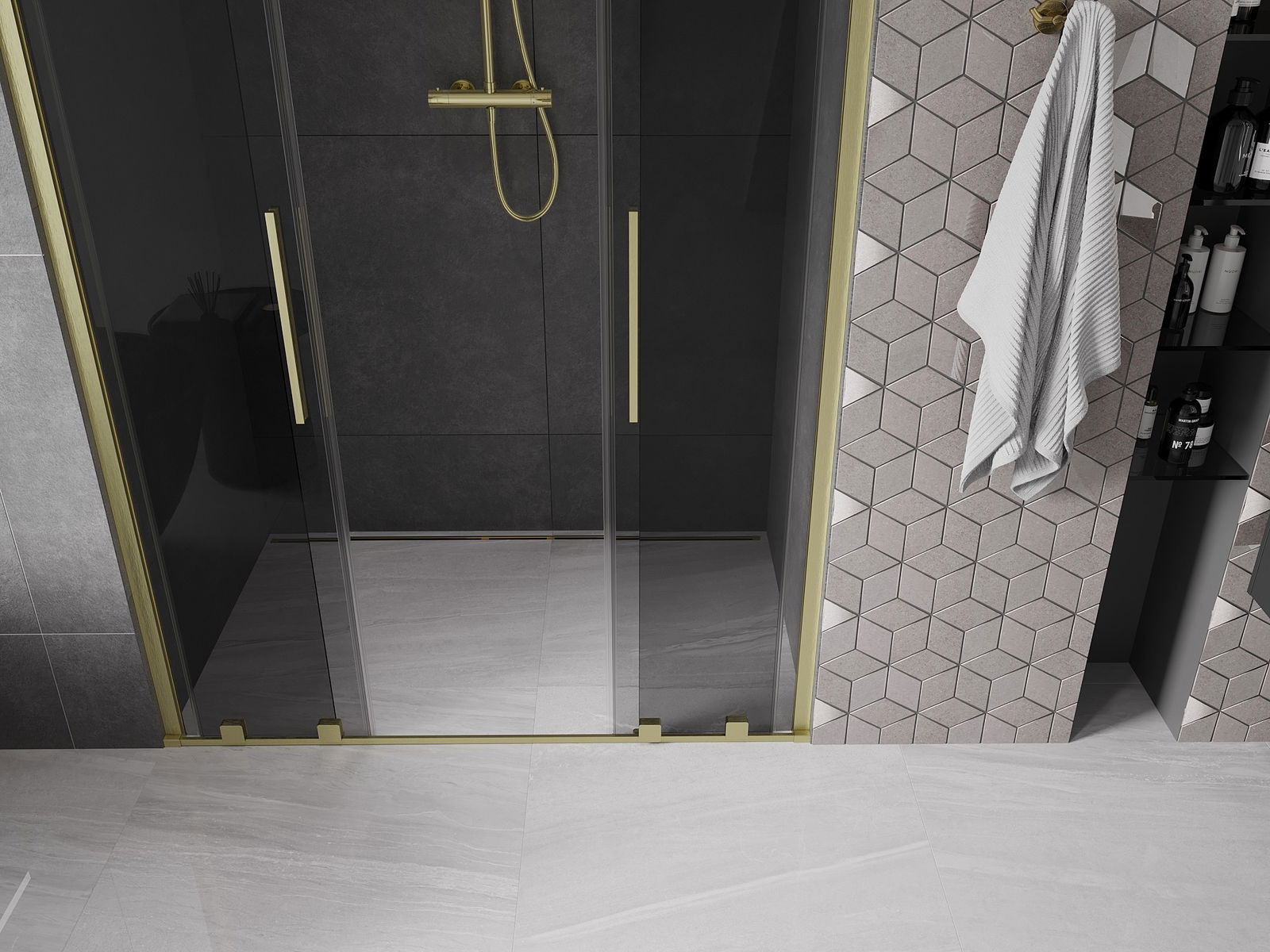 Mexen Velar L Duo uși de duș glisante 140 cm, grafit, auriu periat - 871-140-003-42-55